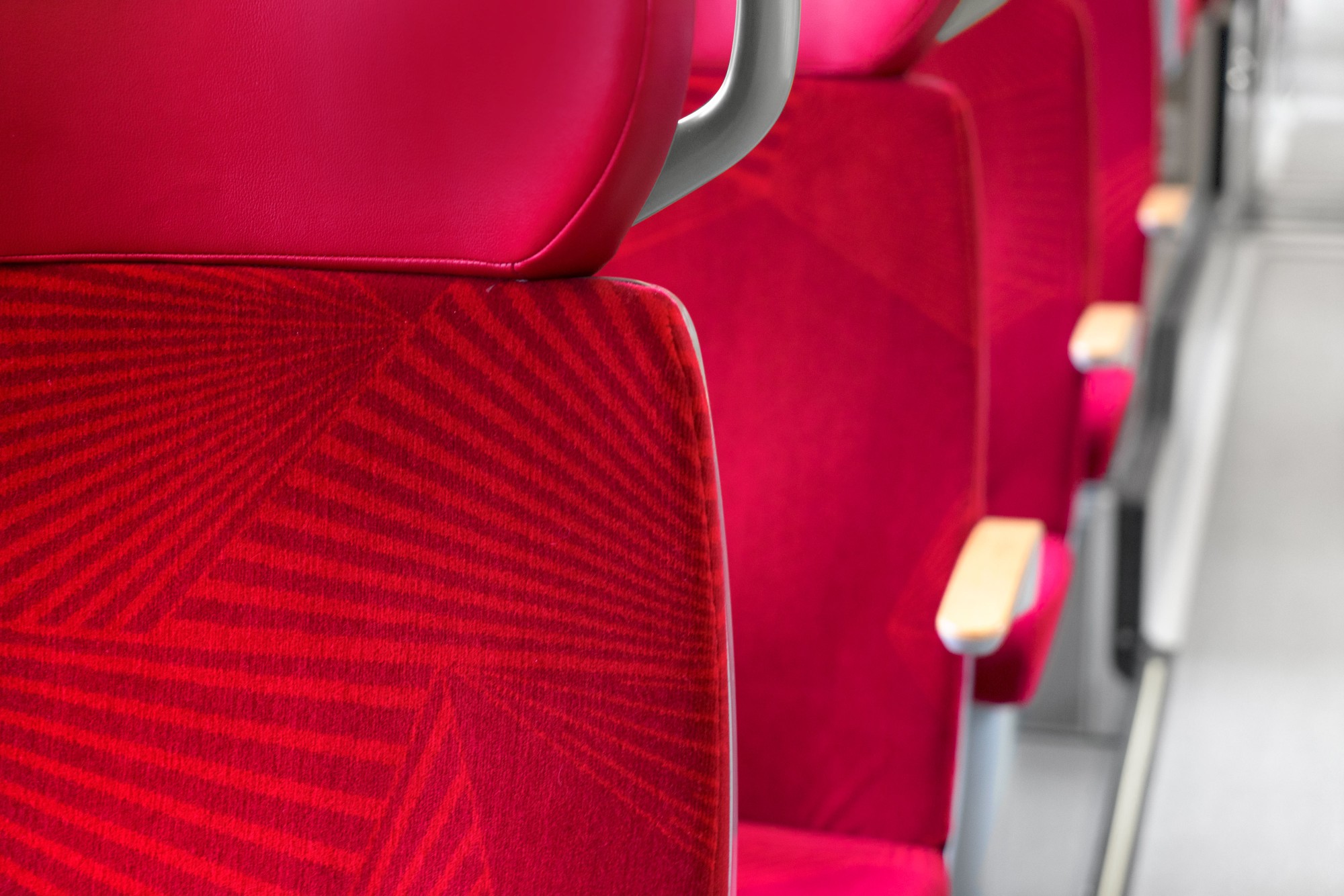 Pensés pour offrir une sensation d’apaisement aux voyageurs, les motifs résonnent tour à tour avec la dimension écologique du transport ferroviaire, les paysages et le patrimoine à l’intérieur duquel il s’inscrit. Chaque proposition est ainsi conçue dans la continuité d’une étude scrupuleuse du contexte, afin d’aboutir à un résultat riche et sur-mesure. Grâce à une dessin évolutif sur toute la hauteur de la laie, les textiles offrent une grande diversité de motifs sur les sièges. Le dessin, les matériaux, et les découpages couleur du matériel roulant sont conçus conjointement, dans la continuité des volumes imaginés par les designers du studio de design d’Alstom Transport.
