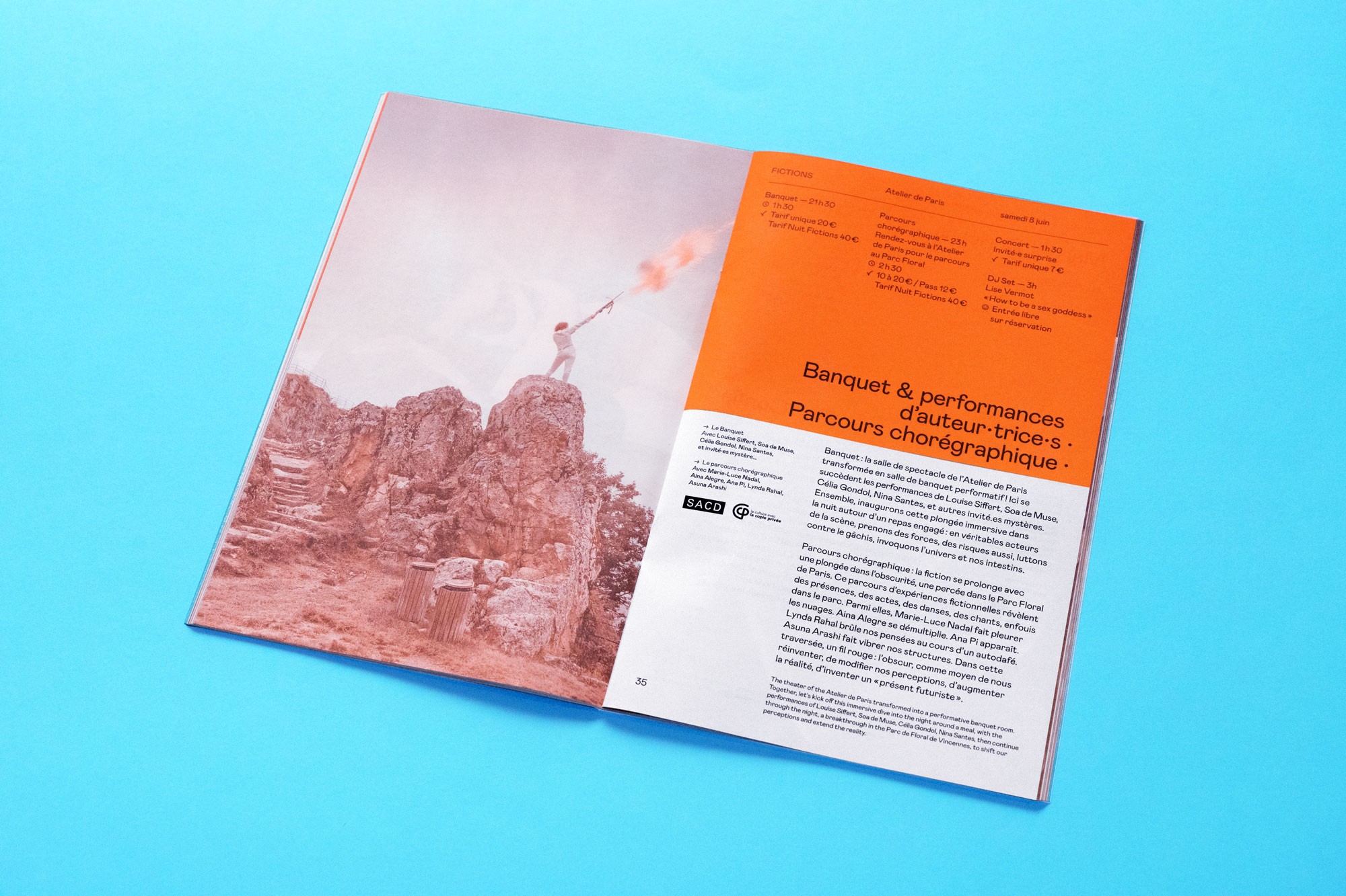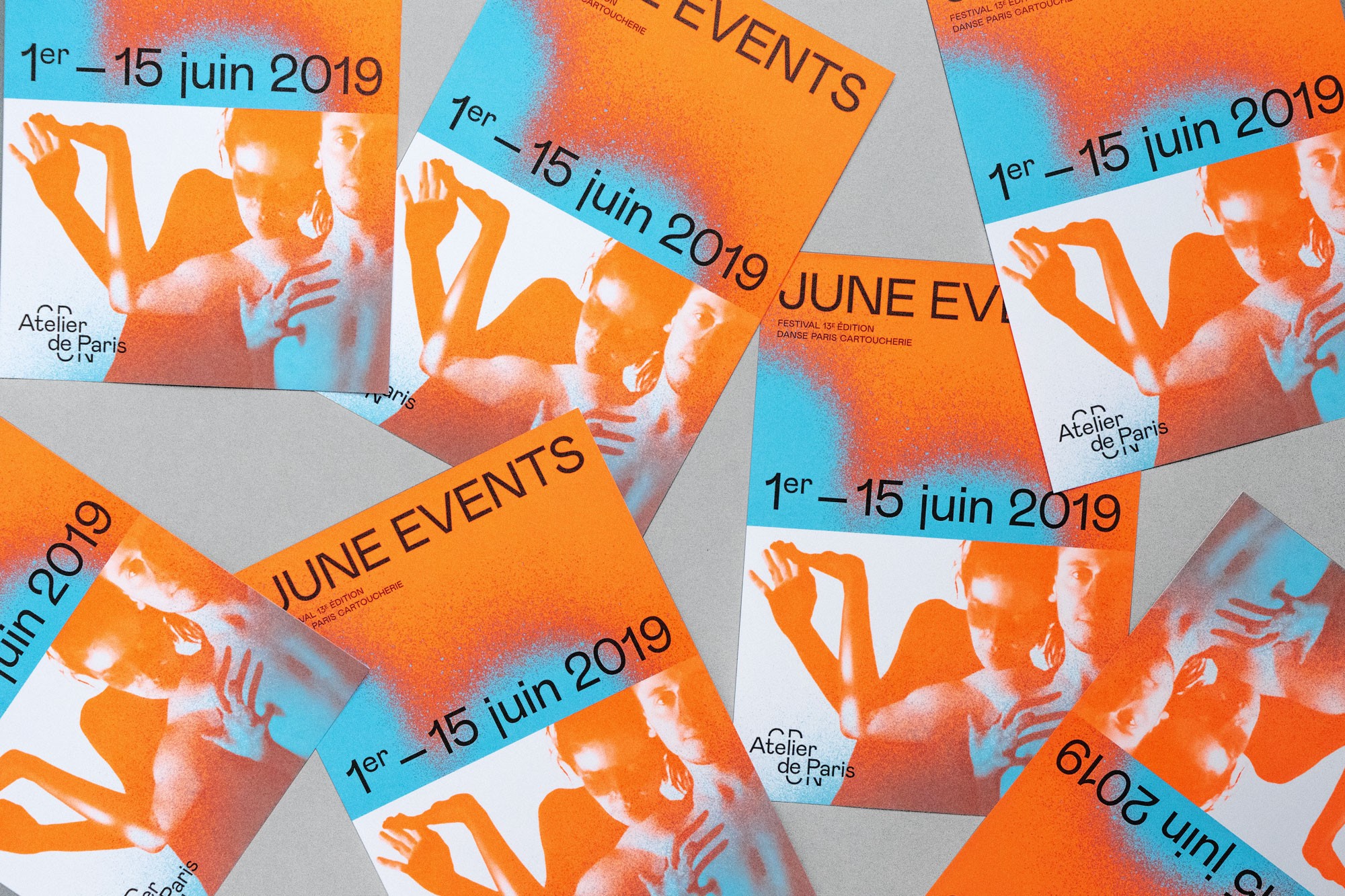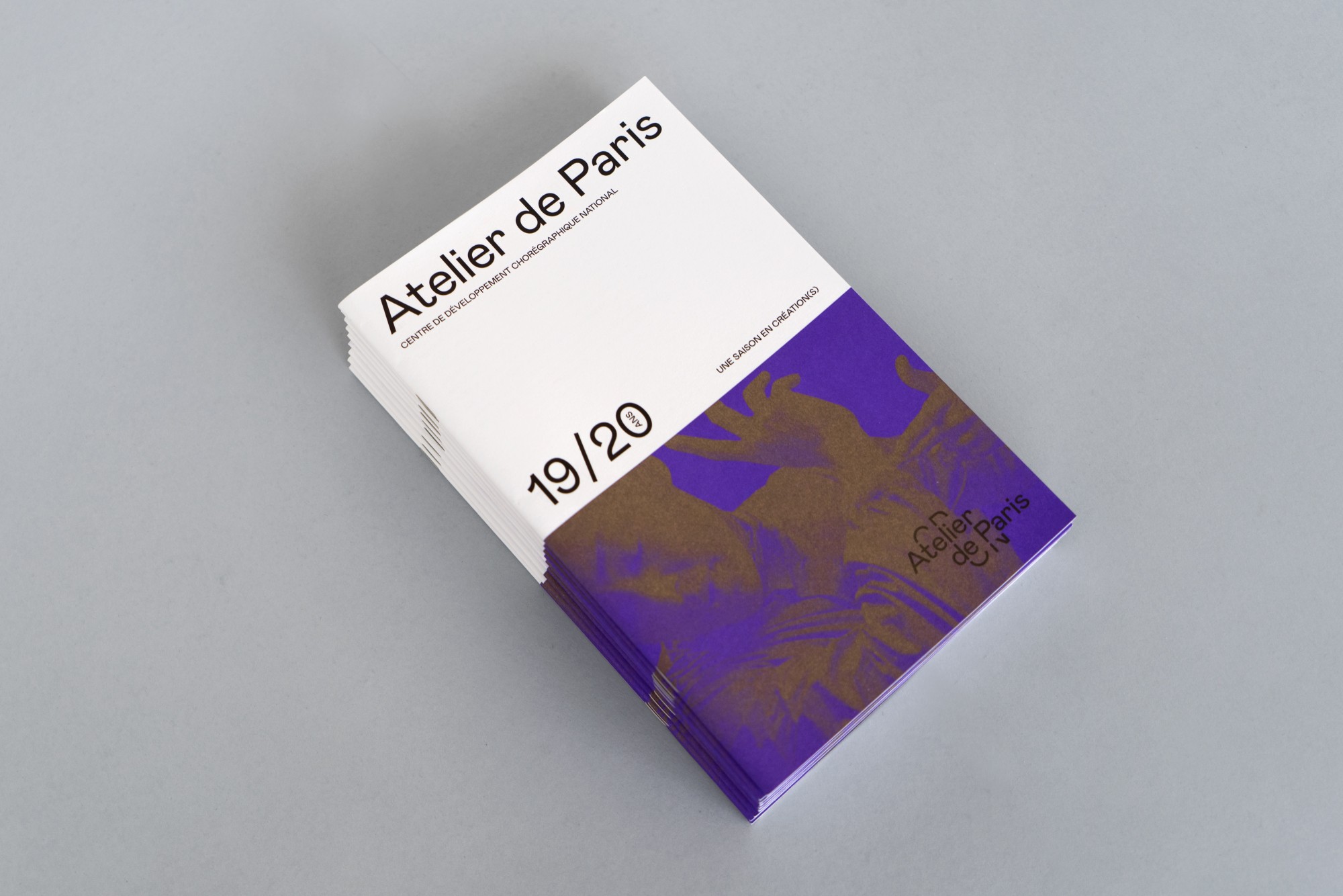 Depuis 2018 l’identité d’Atelier de Paris CDCN chemine d’une saison à l’autre au fil d’une large gamme de couleurs vives.