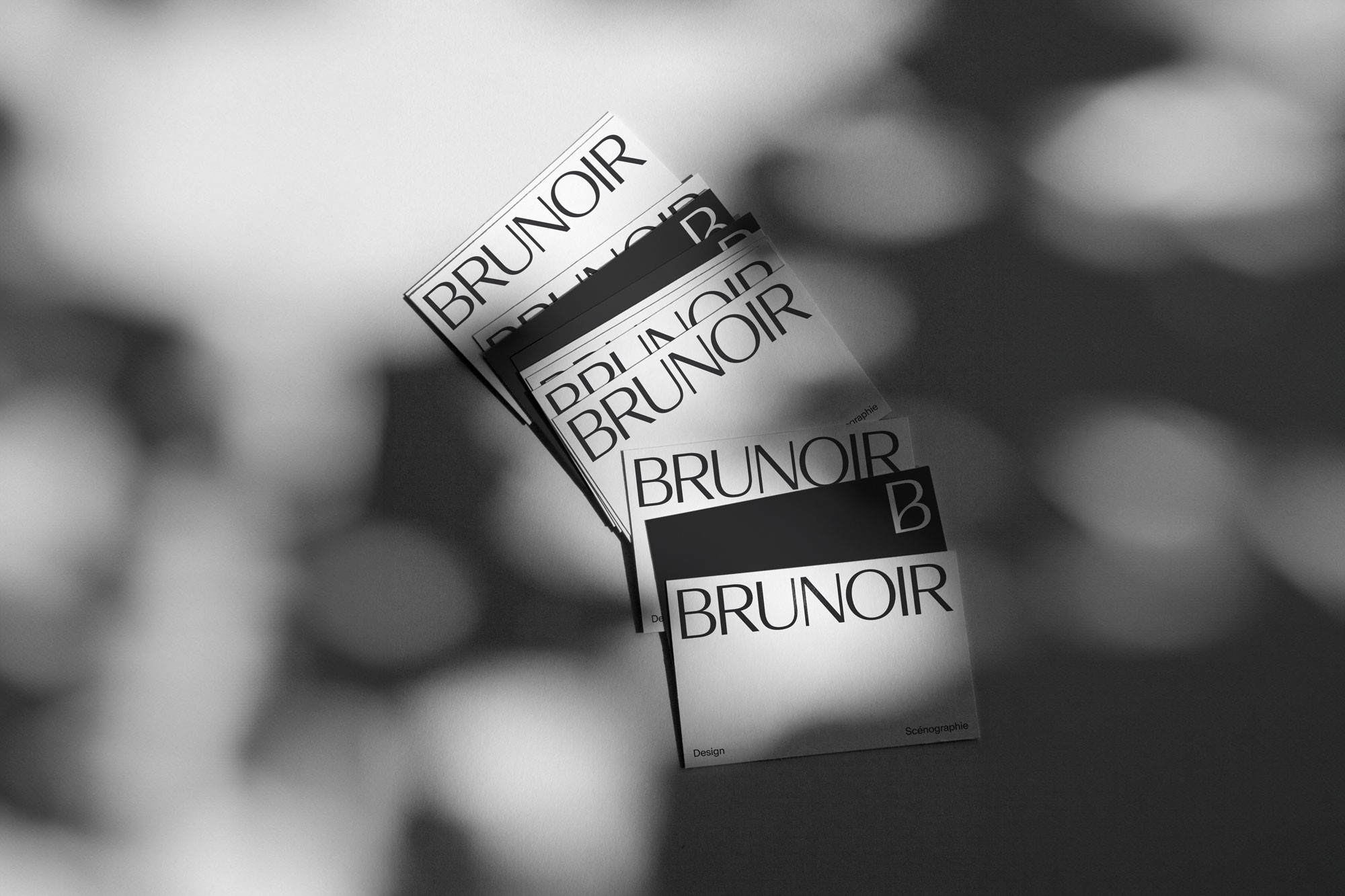 Brunoir est un studio installé à Paris, spécialisé dans le design d’espaces et la création scénographique. Il conçoit des projets pour le luxe, la mode et la culture. Atelier Baudelaire a imaginé une identité visuelle minimaliste, toute en noir et blanc, donnant la part belle à l’image et à la typographie. Un monogramme dessiné sur mesure constitue le socle de l’identité, et assoit le positionnement d’excellence du studio.
