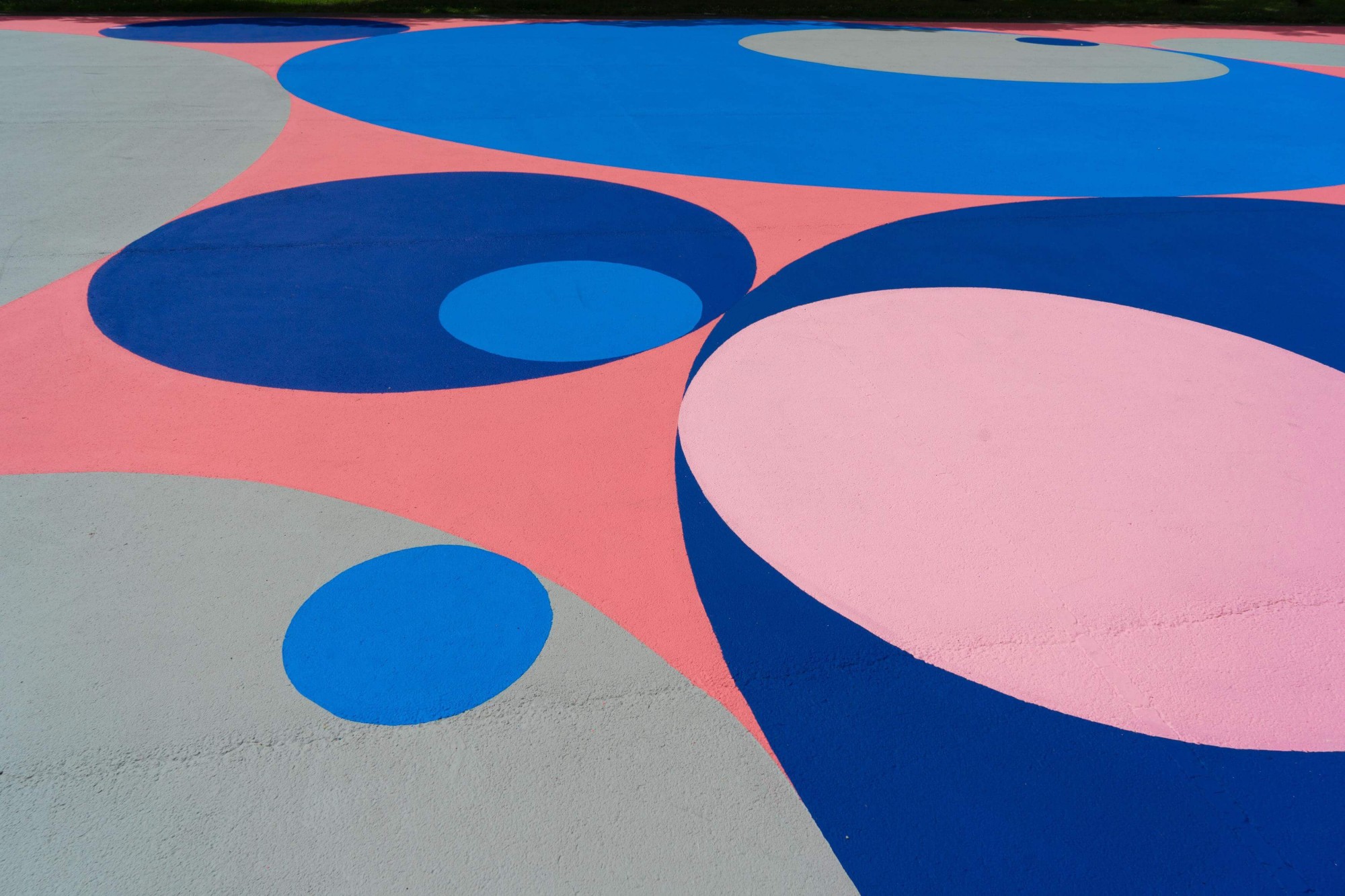 Le sport et l’Art ont le pouvoir de rassembler les gens, de créer des communautés et de favoriser le partage d’expériences. La notion de mouvement est le fil conducteur du parcours artistique commandé par la ville de la Courneuve et le département du 93. Ce dernier prend la forme d’une déambulation à travers la Ville. Dans le cadre de ce parcours, Atelier Baudelaire a été invité à proposer une œuvre monumentale à l’échelle d’un terrain de handball. Situé entre La Courneuve et Saint-Denis, ce terrain fait partie d’un vaste complexe sportif désigné site d’entraînement des Jeux Olympiques et Paralympiques de Paris 2024.