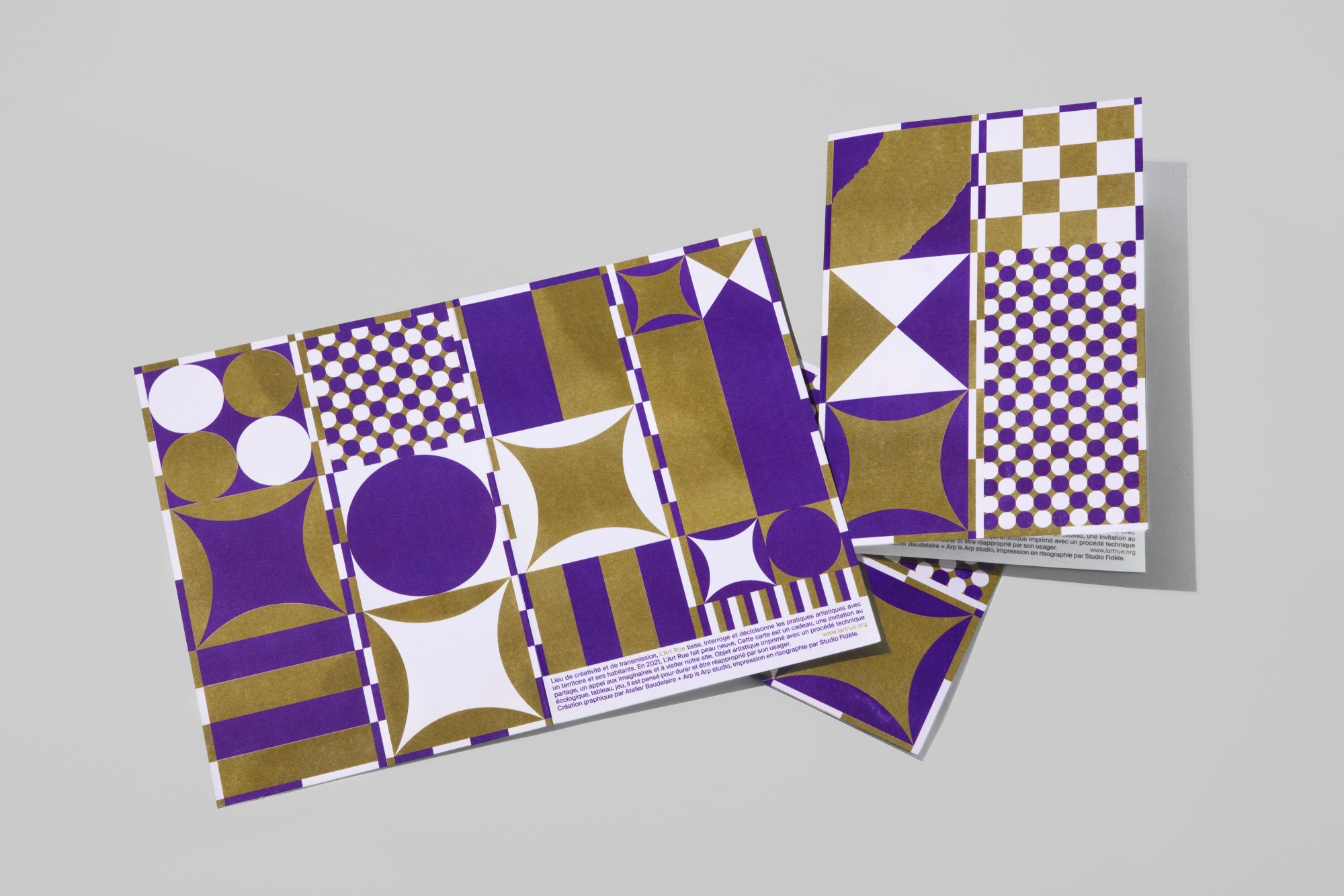 Pour annoncer la nouvelle identité de L’Art Rue, espace de création, d’expérimentation et de recherche entre les pratiques et les cultures basé dans la Médina de Tunis, nous avons conçu simultanément une carte-jeu imprimée en risographie et une vidéo intégrant une œuvre musicale réalisée dans la Médina. La carte s’offre comme un tableau abstrait aux formes ludiques qu’il est aussi possible de découper pour créer un jeu de domino revisité. La vidéo joue également avec l’échelle des motifs pour évoquer cette fois la trame urbaine et l’effervescence de la médina, en écho avec la mixité artistique que défend l’association.