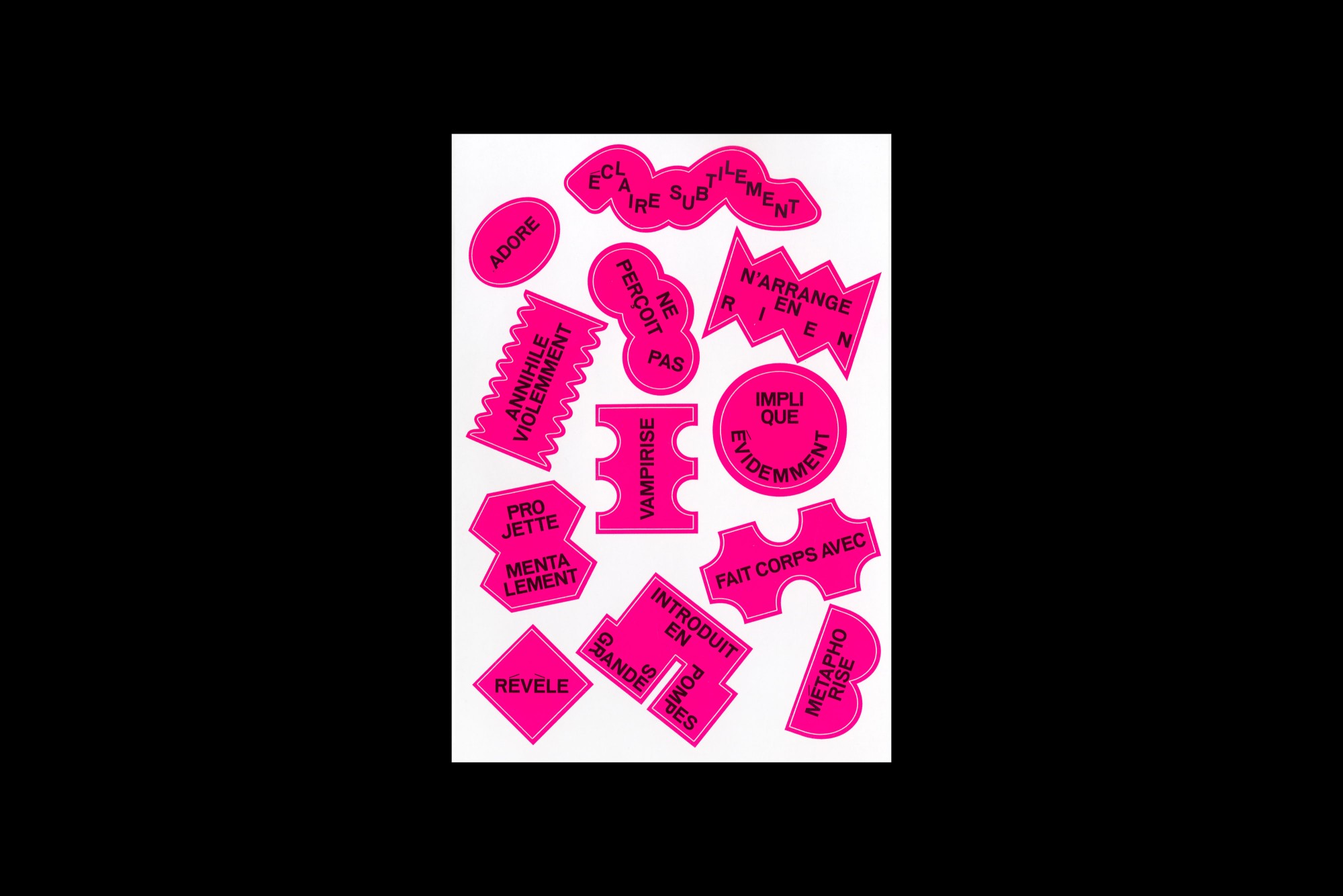Fondés sur le principe du cadavre exquis, ces stickers, à la fois visuels et textuels, permettent de composer des phrases amusantes et poétiques.