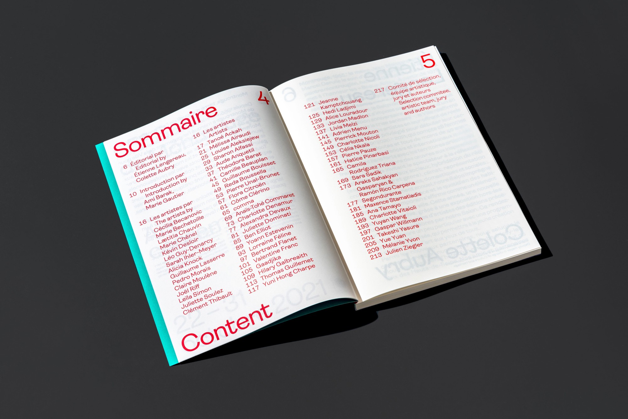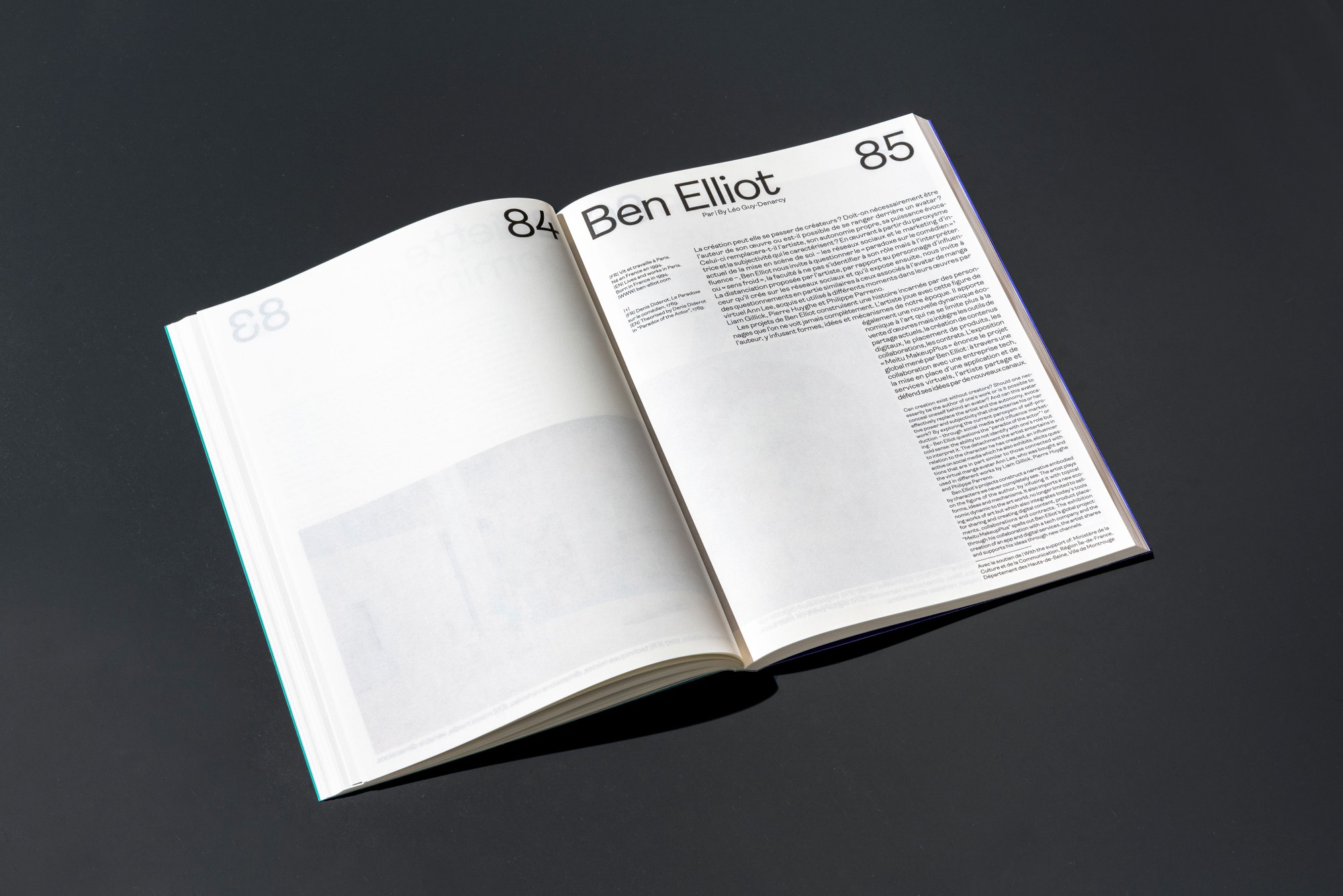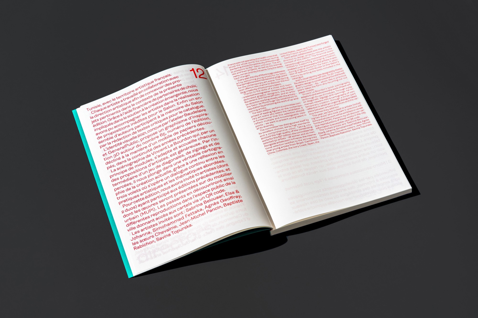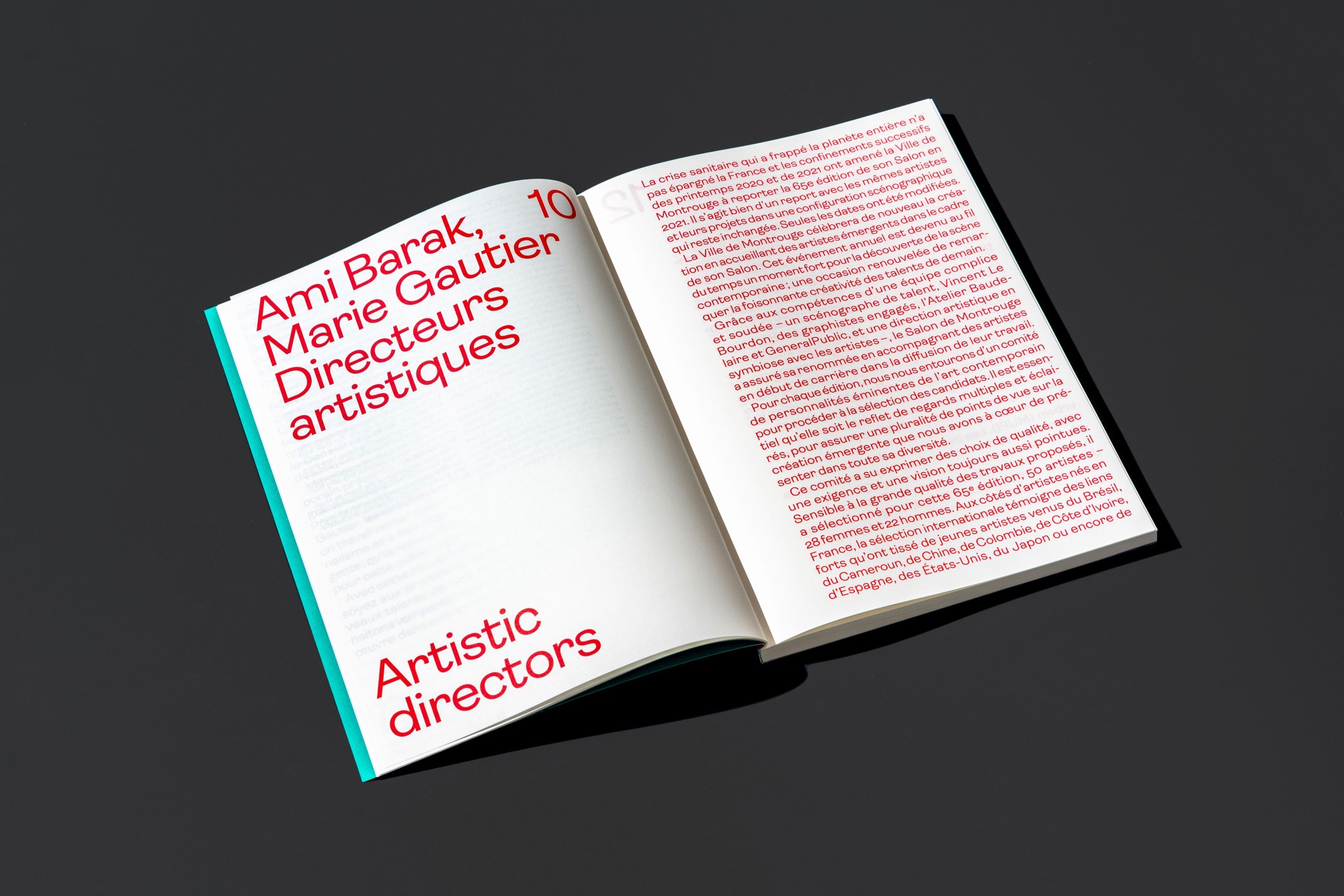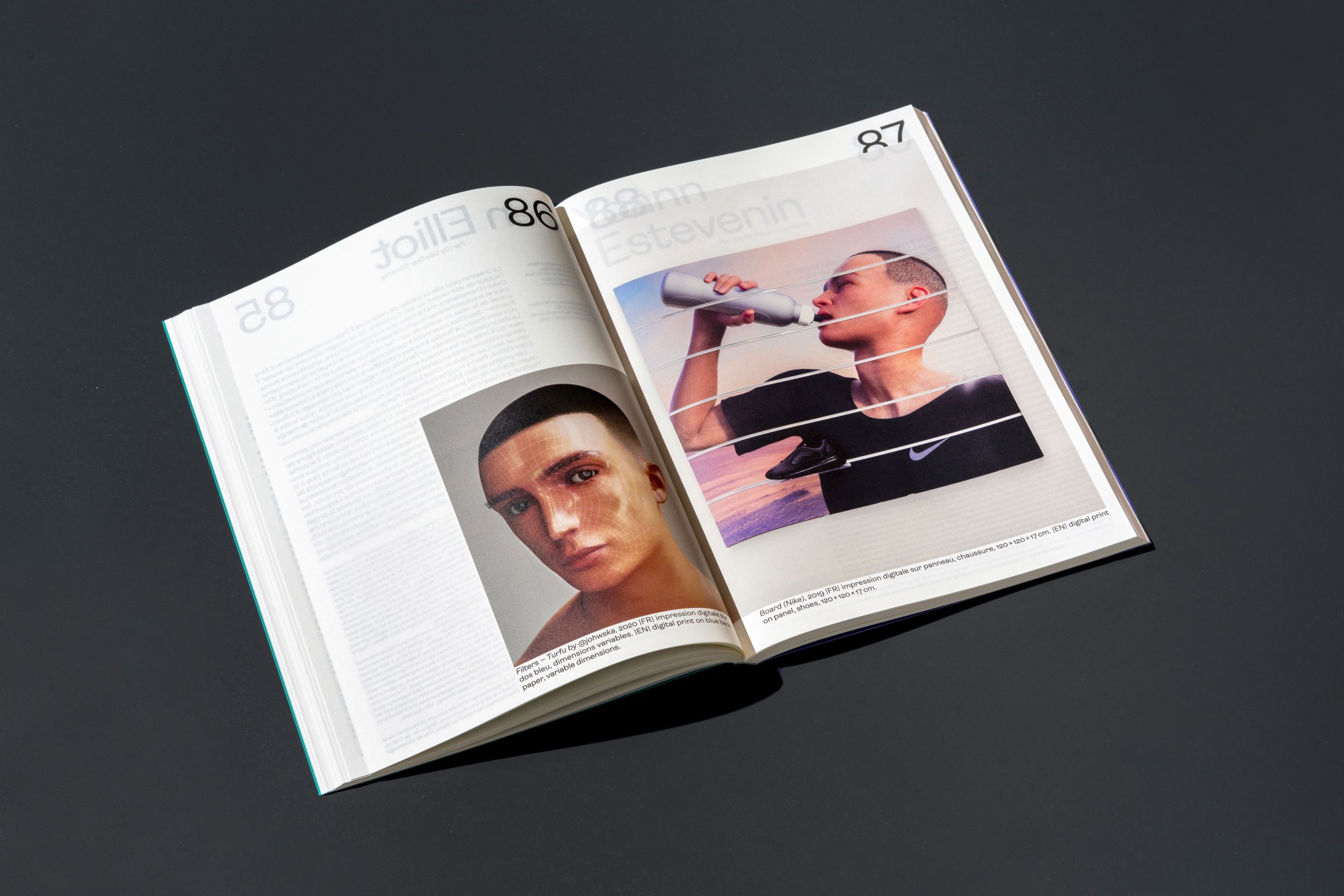 The catalogue was designed using ultra-thin paper, doubling the book’s volume and creating transparent overlays between the double-page artist texts and the facing image spreads. The layout adapts to the images seen in watermark, while generous type sizes animate the reading pages and draw the eye. Text and image respond to one another in a compact, dynamic composition, offering a harmonious rhythm to this bold editorial object.