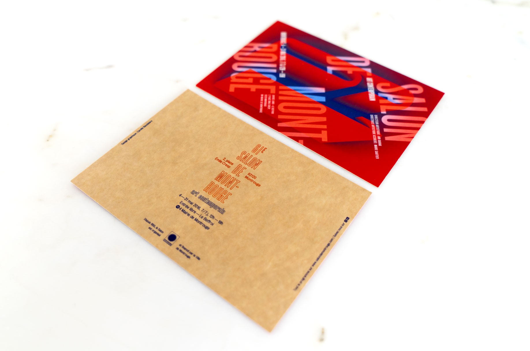 Pour ce Salon d’art contemporain émergent, une identité sous le signe du renouveau était attendue dans la foulée du changement de direction artistique. Avec cette première édition, l’identité s’impose dans un langage marquant aux accents irréels, arborant le rouge de la ville. En lien avec ce visuel est également élaboré en étroite collaboration avec Vincent le Bourdon un travail sur la scénographie et la signalétique. Dans sa démarche de travail, l’atelier s’inspire de la porosité des pratiques et des médiums à l’œuvre chez les jeunes artistes. Il emploie notamment la 3D sur tous les supports imprimés, relevant ainsi un vrai défi technique, que l’on continuera d’explorer année après année. Pour célébrer la fraîcheur et l’inventivité du salon, l’identité se verra chaque année accompagnée d’une typographie aux accents fantaisistes.