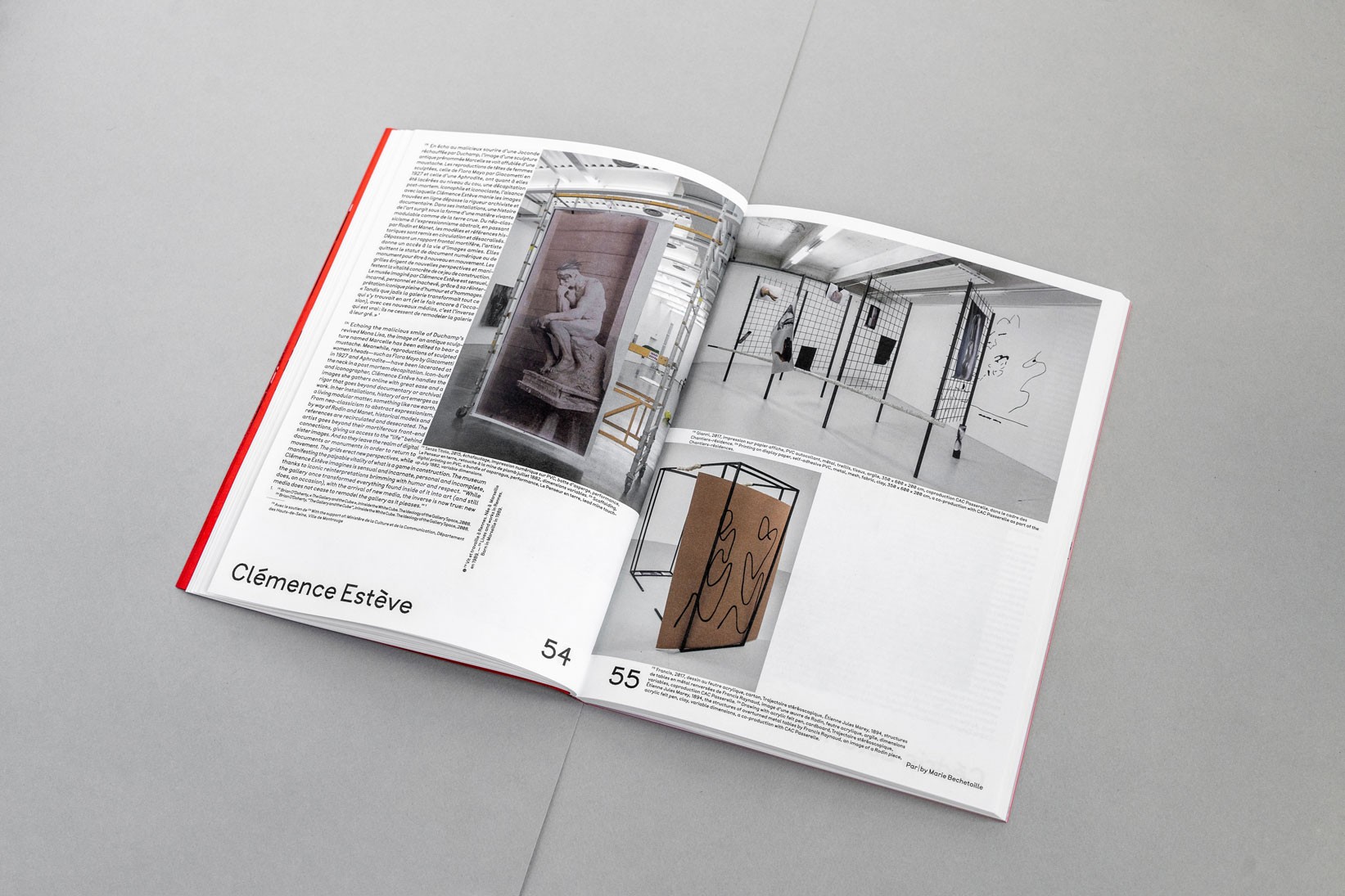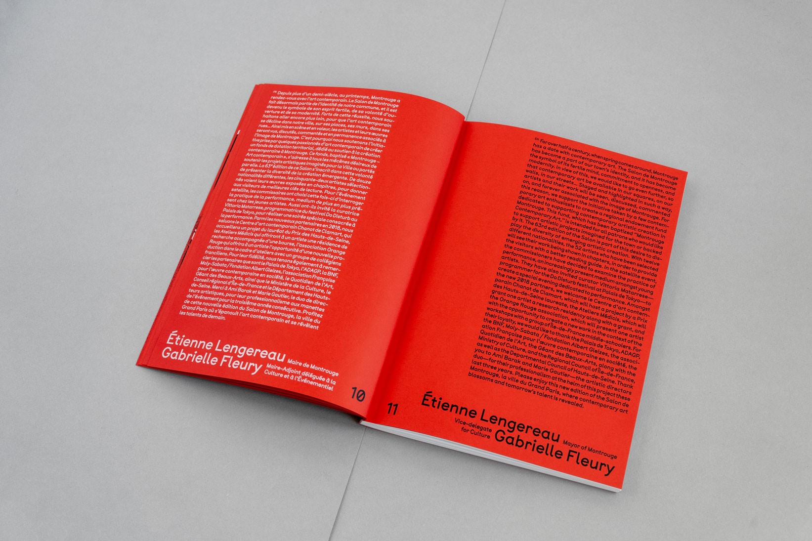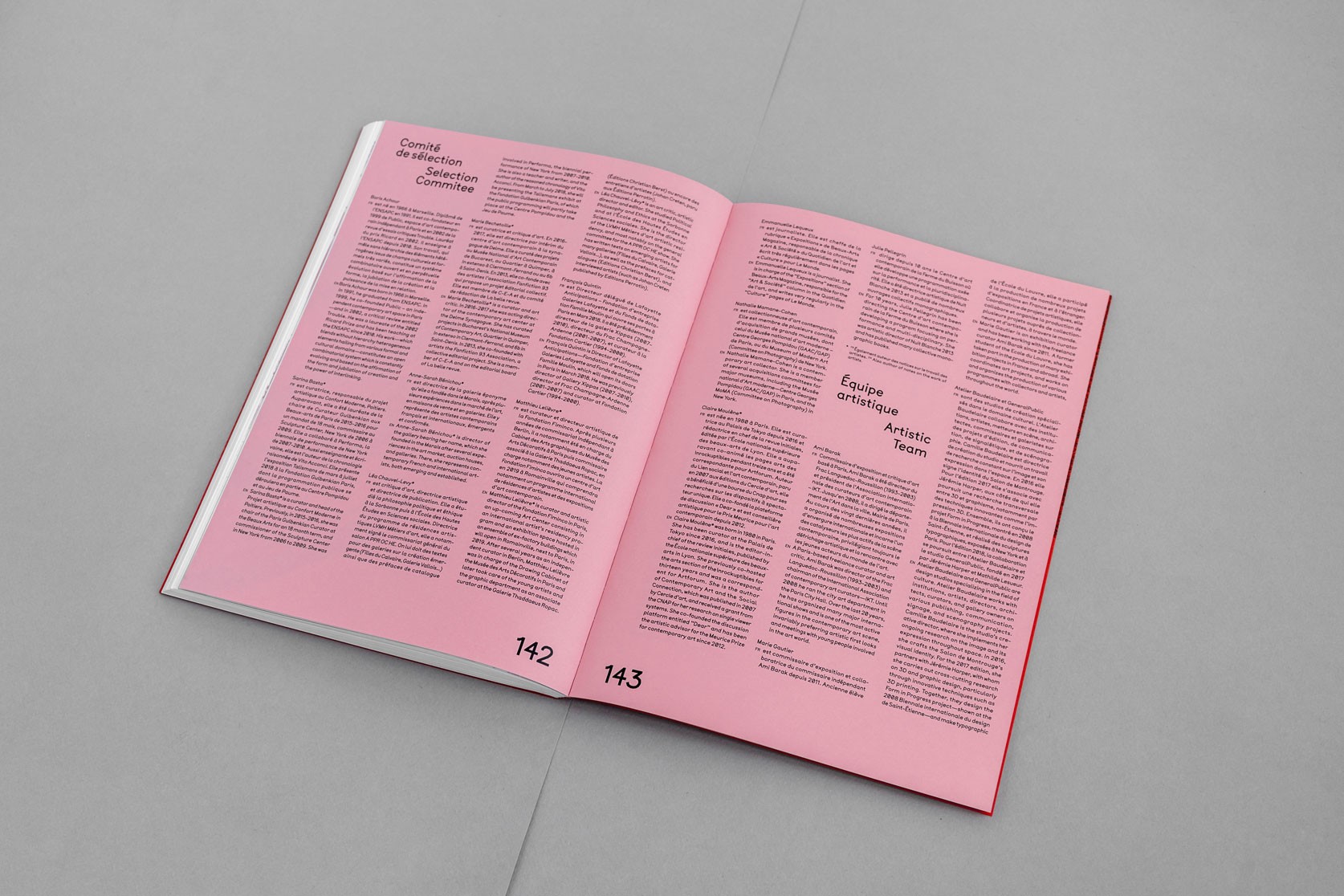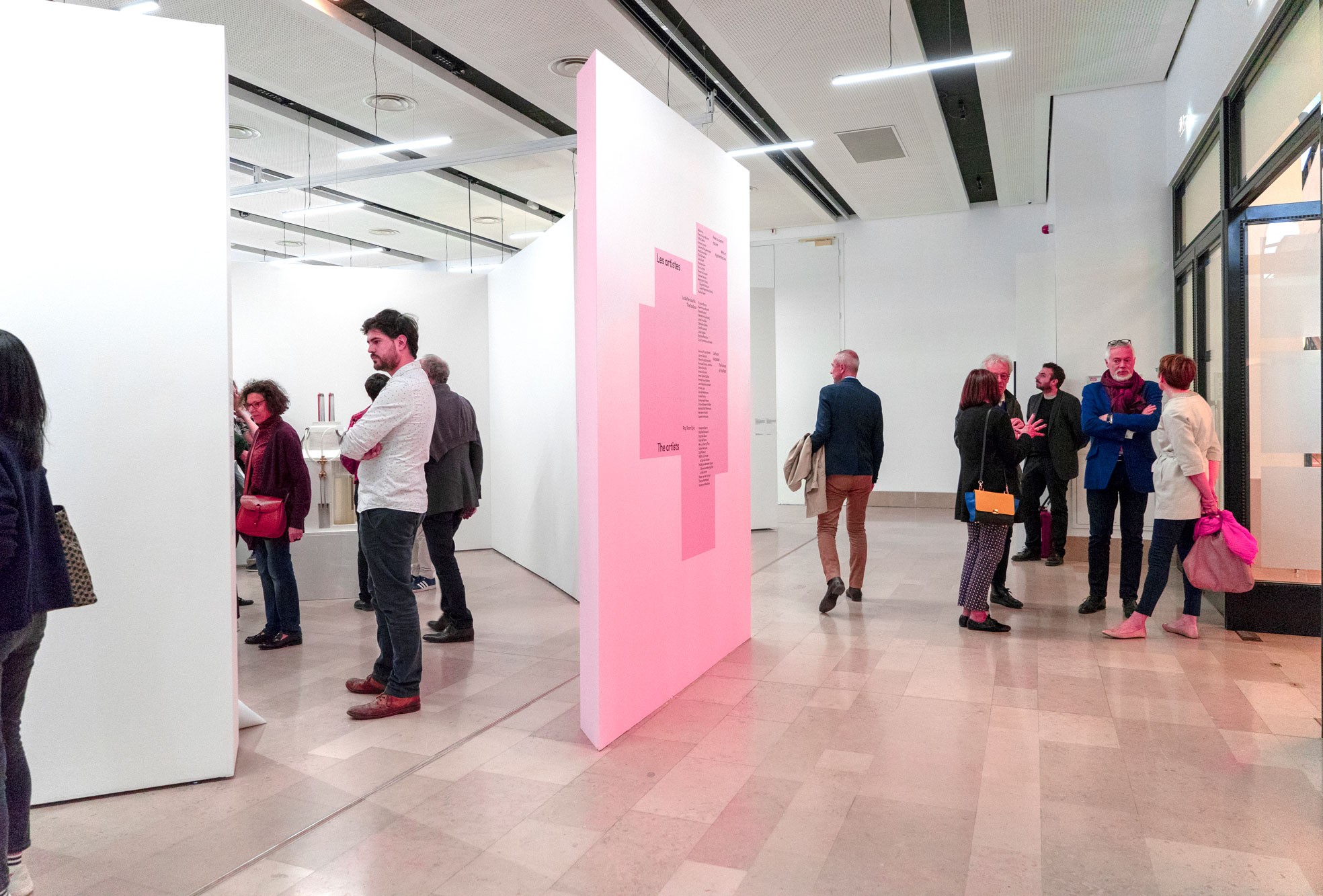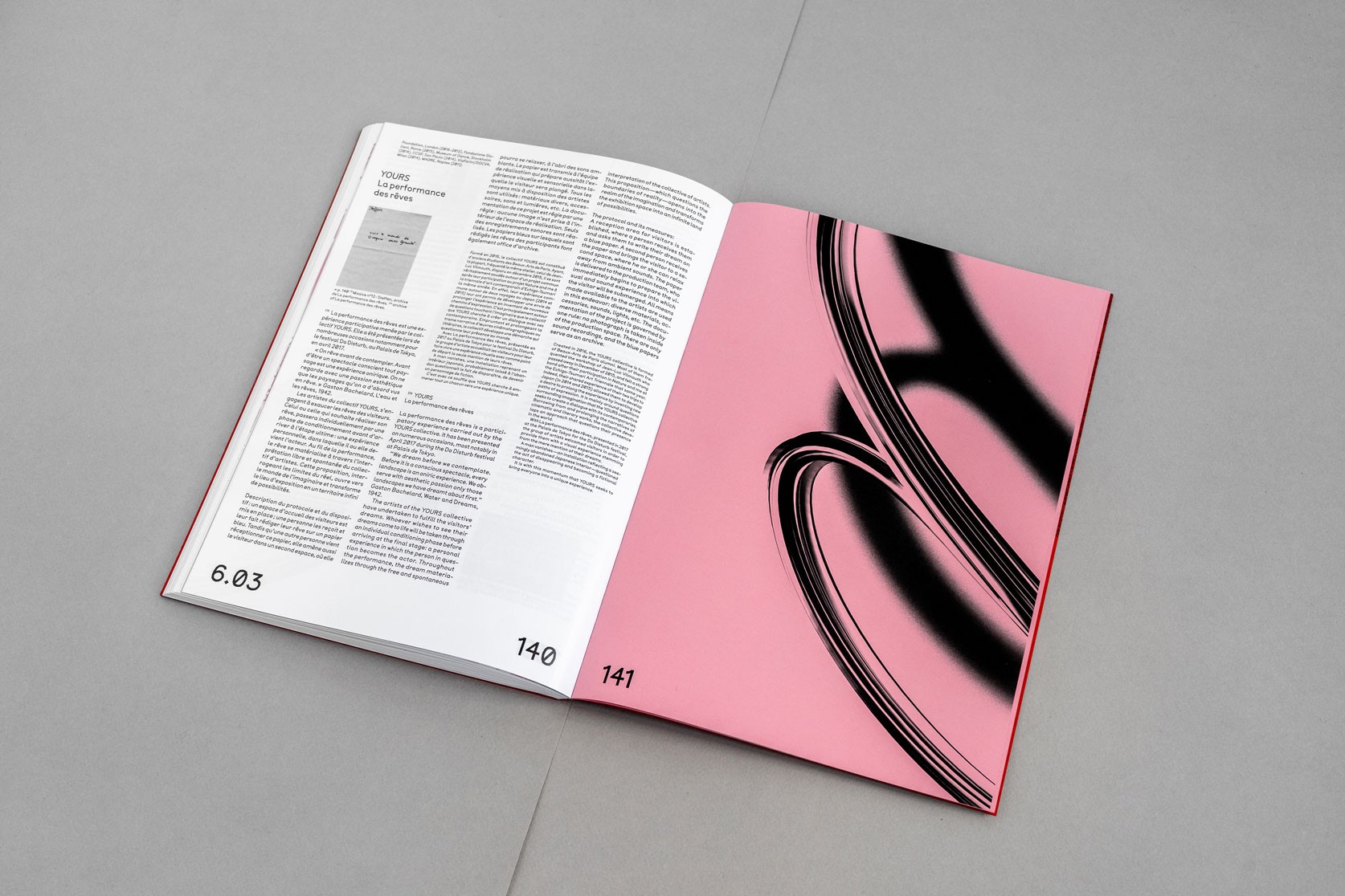 Le système de subdivisions et de cadrages, l’emploi de textures de « bruit », ainsi que les différentes combinaisons de rouges vif et rose, permettent un large déploiement de cette identité aux accents irréels. Entre peinture, sculpture, et objet numérique, le 63 représente la diversité des médiums présentés au salon. La signalétique déploie elle aussi une grande variété de médiums : des affiches collées sur les murs peints en rose et rouge et recouverts de sprays de peinture réalisés manuellement.