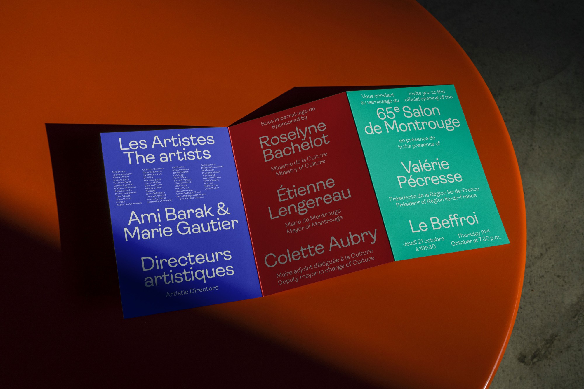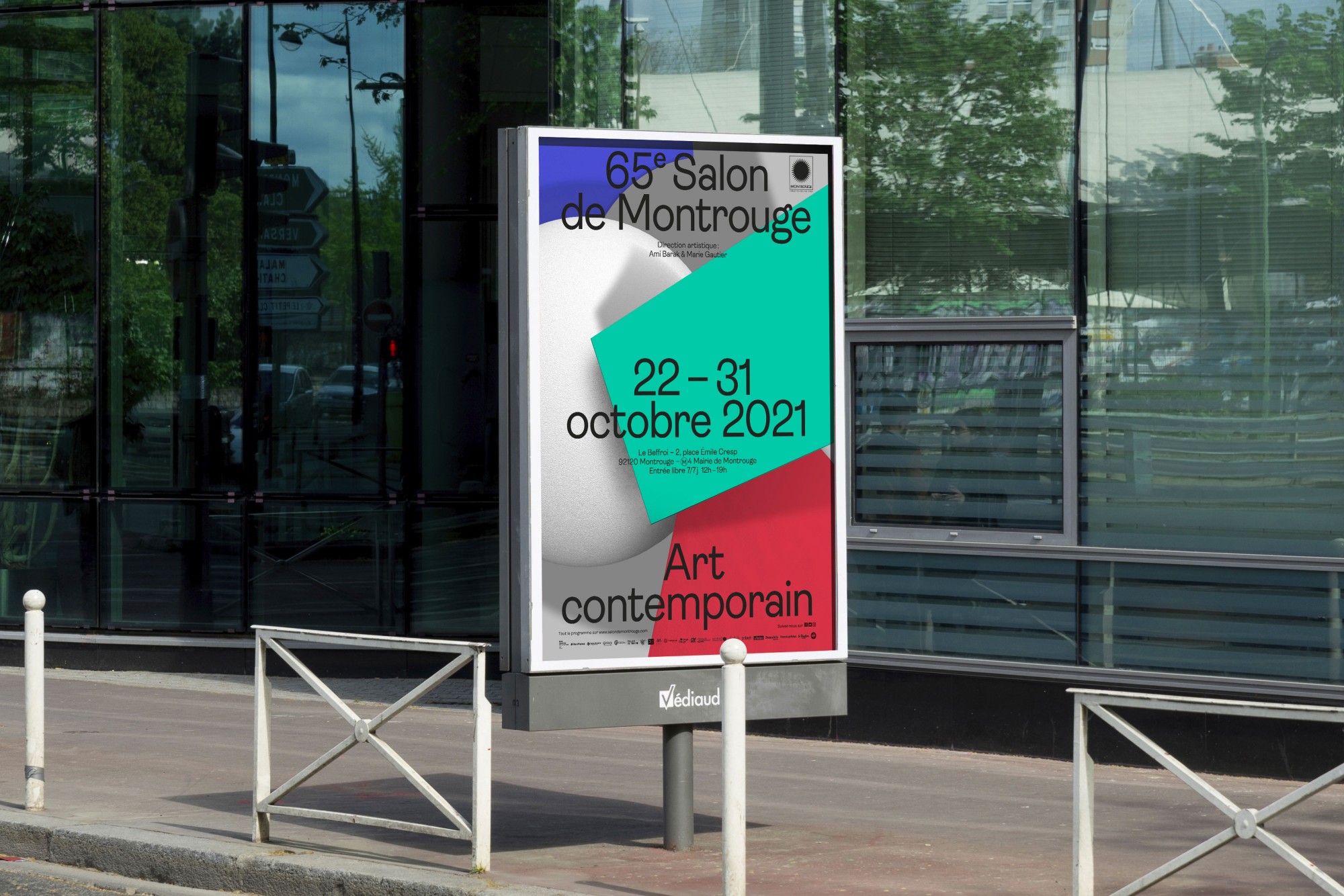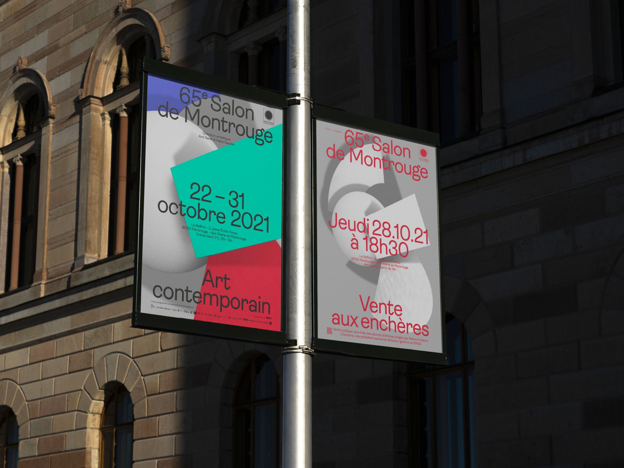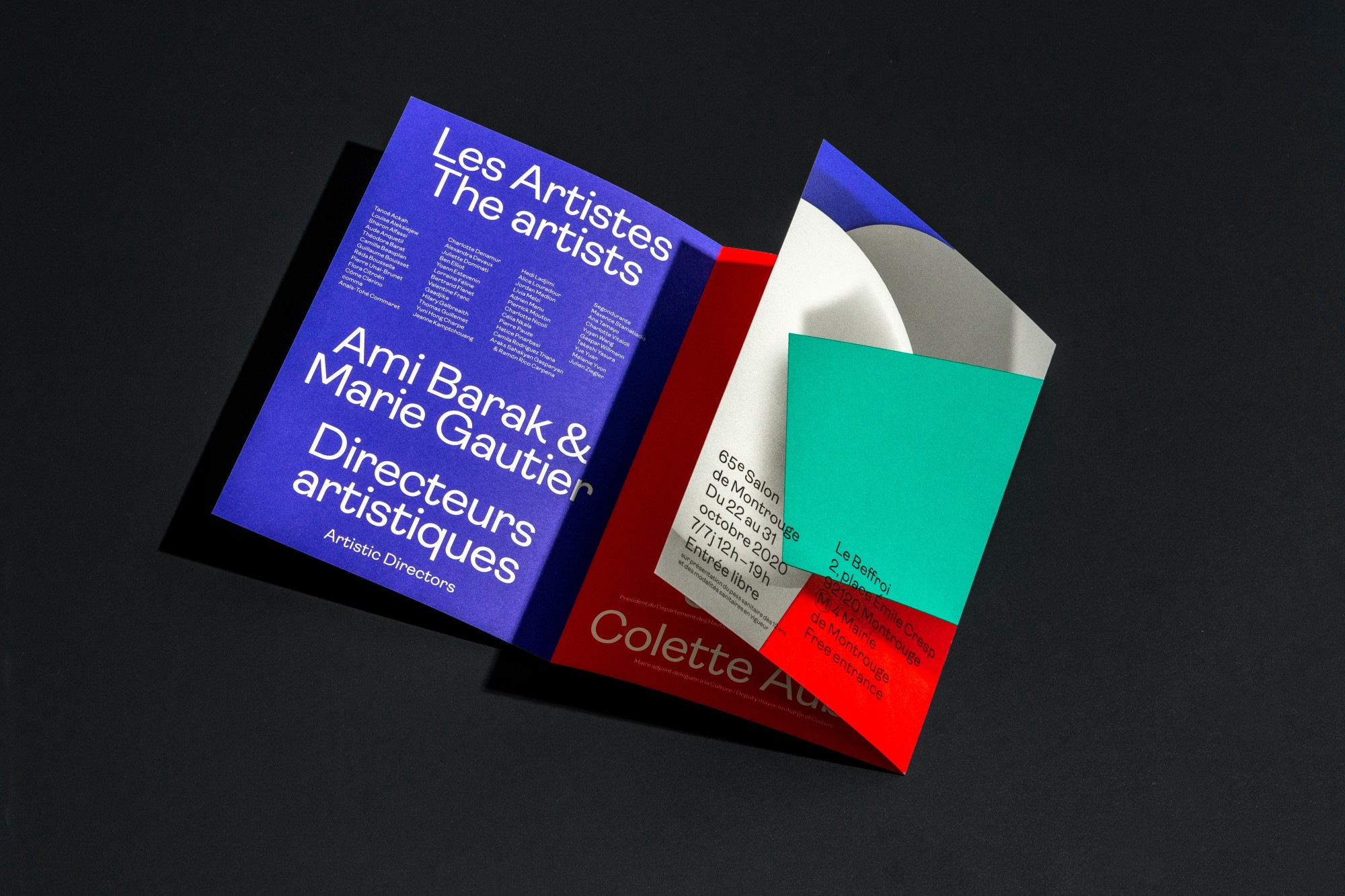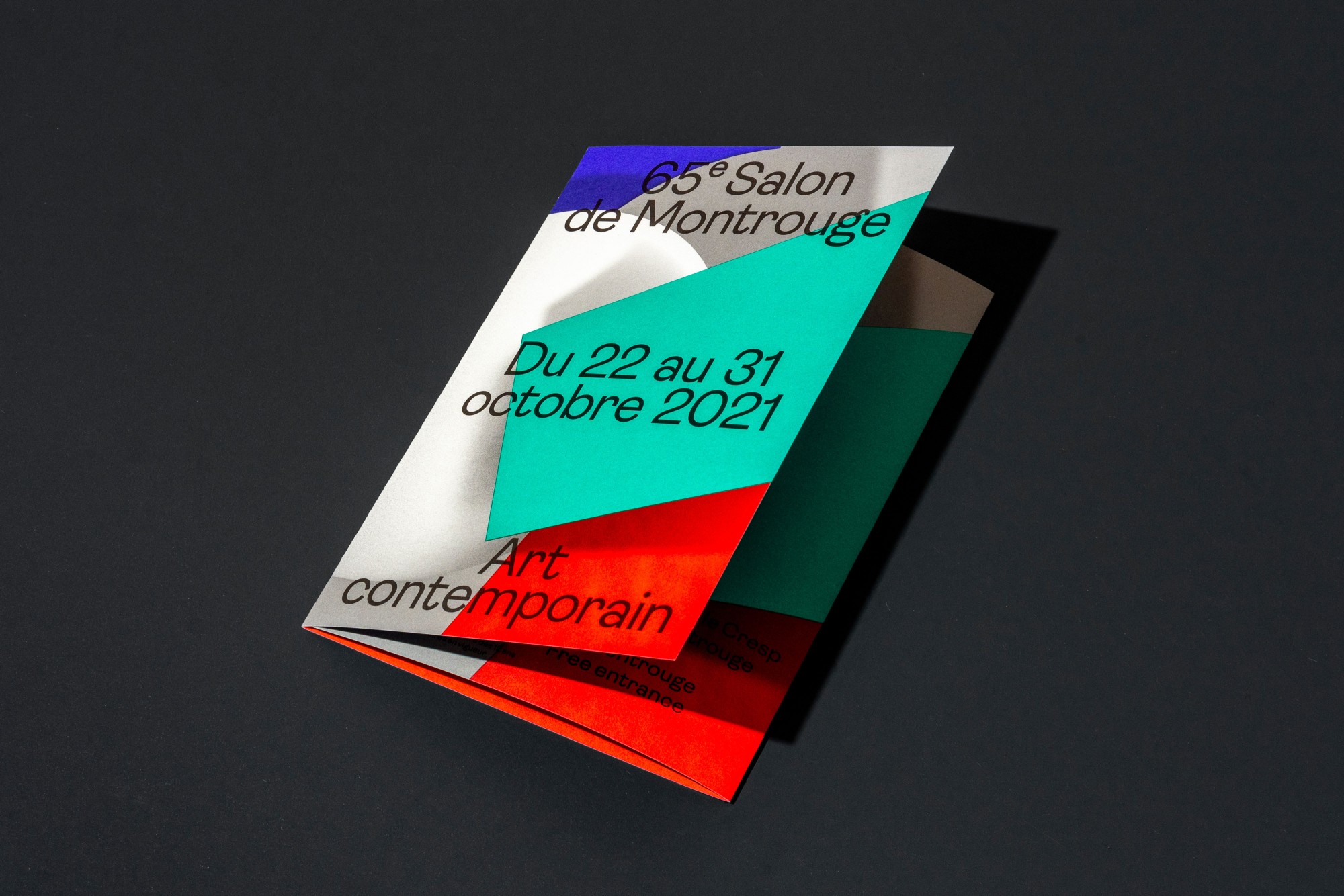 Pour la quatrième année consécutive, l’Atelier Baudelaire et le studio GeneralPublic s’associent pour signer l’identité, le catalogue et la signalétique du Salon de Montrouge, exposition d’art contemporain. En cohérence avec les saisons passées, l’identité arbore le numéro 65 en volume, dans un esprit plus sculptural encore, débordant du cadre jusqu’à devenir un jeu de formes et de couleurs. Affiches, catalogue, invitations, annonces presse, signalétique, etc déploient l’identité par des variations de cadrages et d’échelles. Pour la scénographie, les formes XXL habillent les cimaises, débordent sur le sol et structurent l’espace.