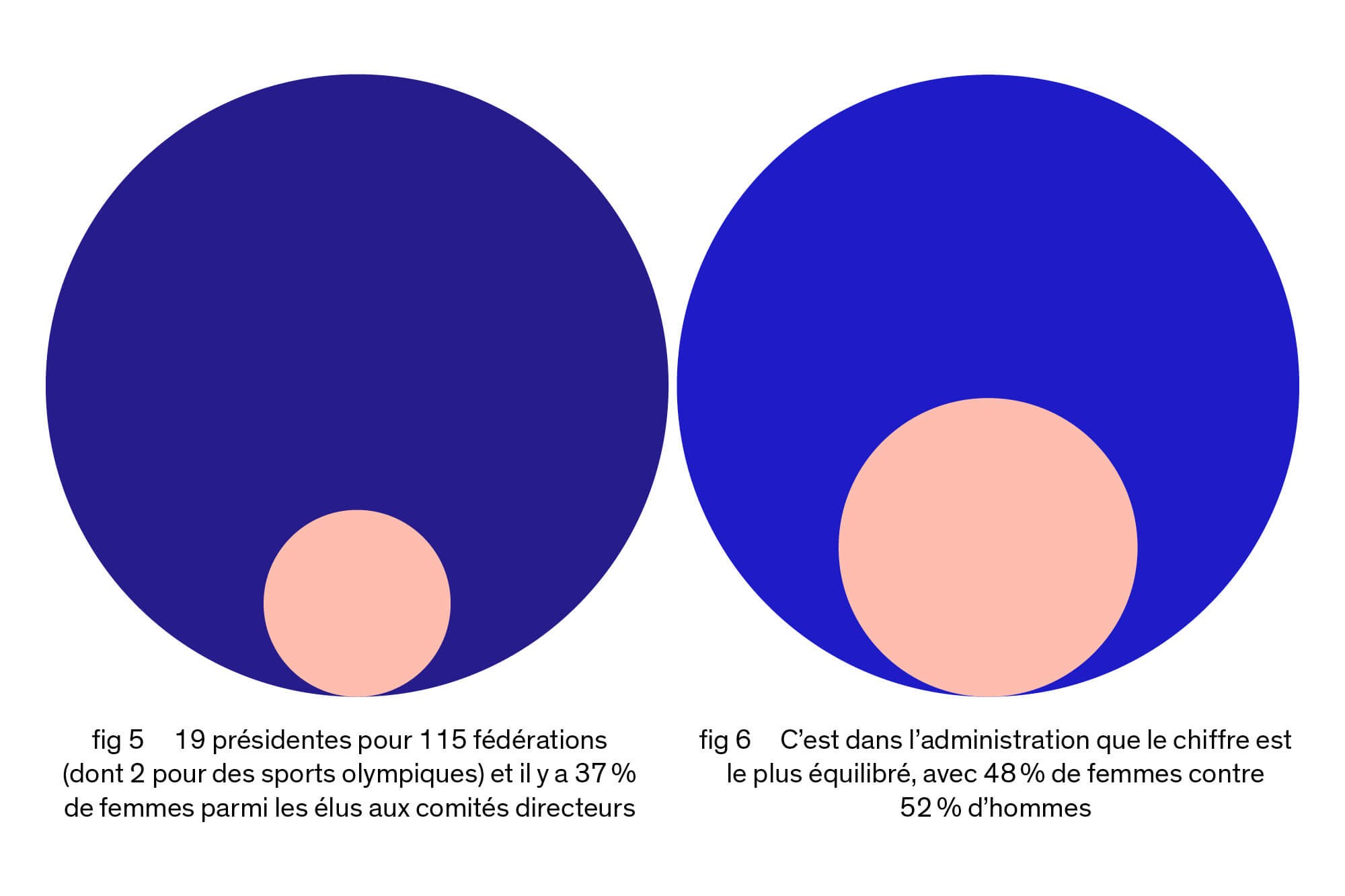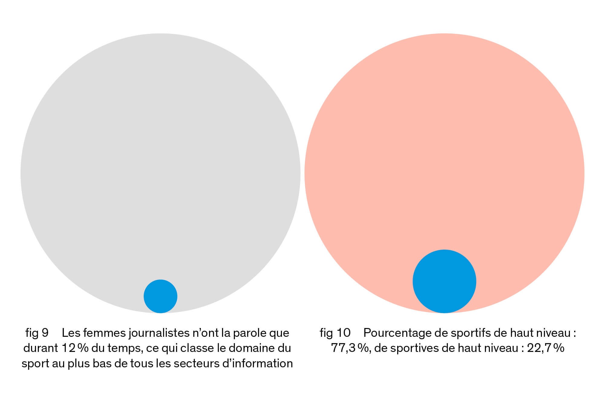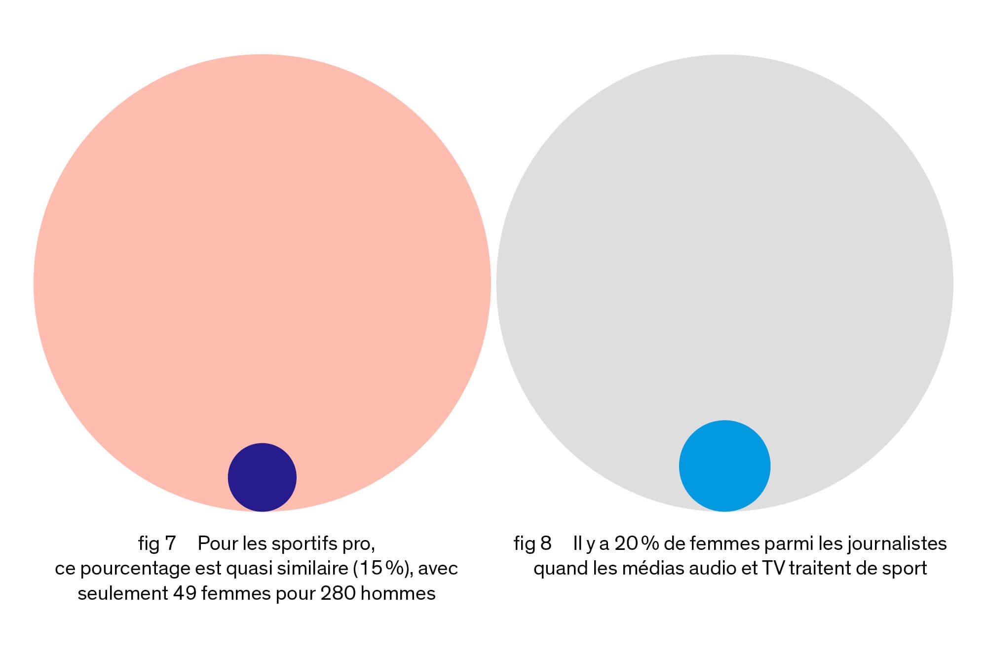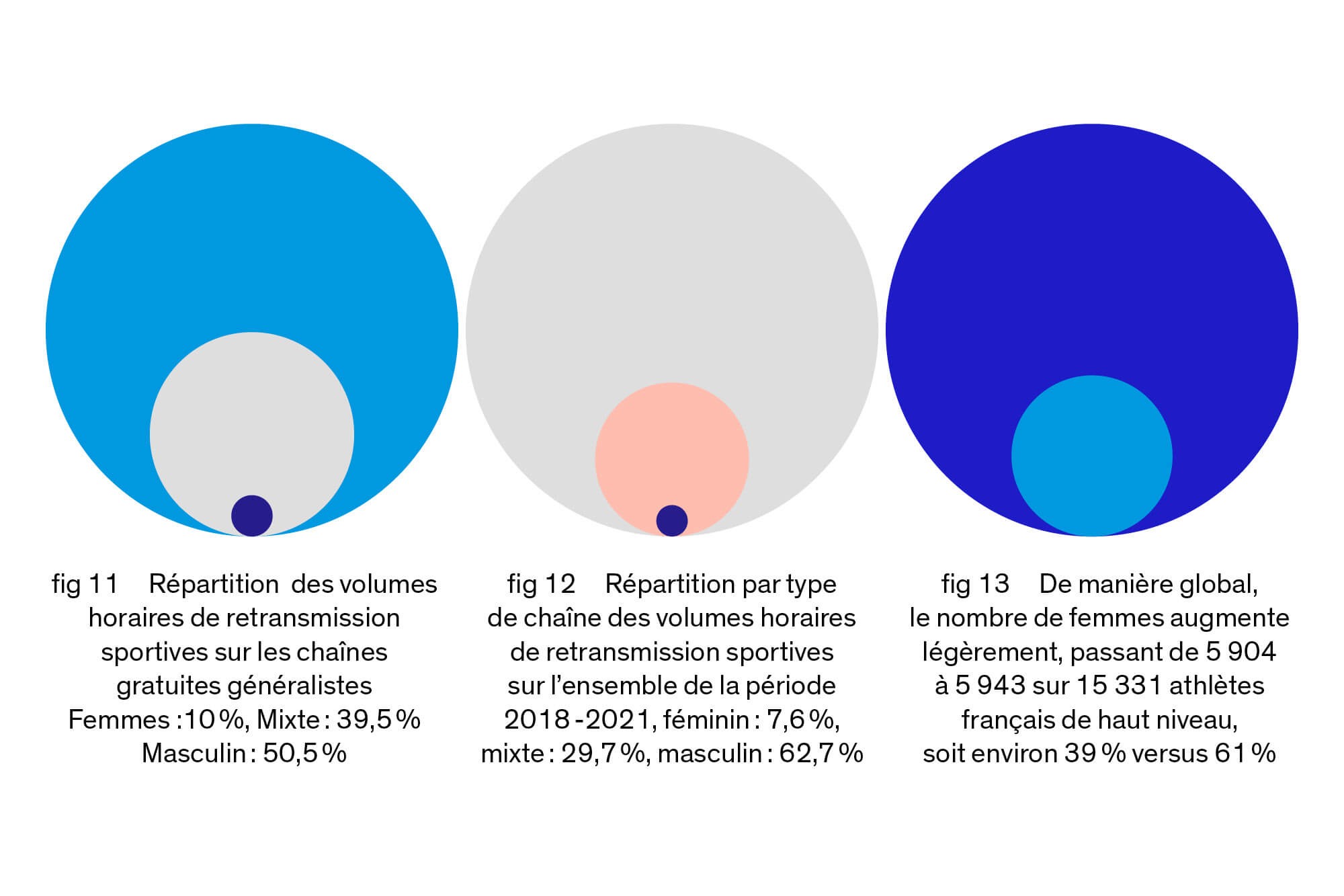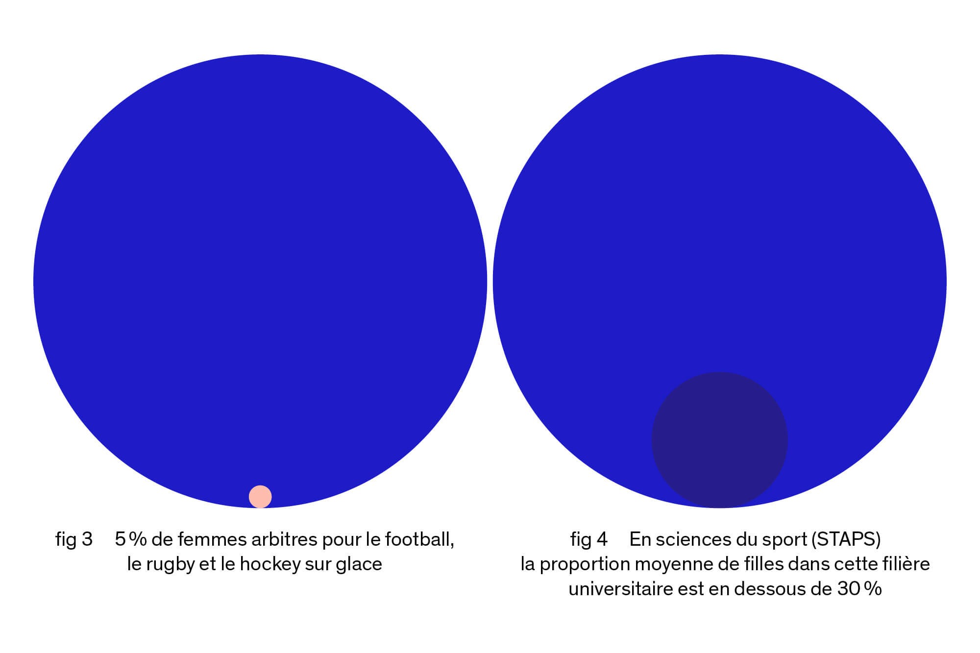 À l’occasion de l’opération « Sport Féminin Toujours » (14-20 février 2022), le ministère chargé des Sports a fait le point sur les avancées relatives à la féminisation du sport et de sa représentativité dans les médias. Fin 2023, au lendemain de la finale des championnats du monde de Handball féminin, TF1 se justifie de n’avoir pu diffuser le match en intégralité. 3,95 millions de téléspectateur.ice.s en moyenne ont suivi la première mi-temps puis 3,2 millions ont dû basculer sur une chaîne du câble (TMC) pour suivre la seconde mi-temps et le sacre planétaire des Françaises. Ce fait marquant a inspiré le projet « Terrain d’égalité » qui donne à voir par une composition graphique colorée, une série de données et de statistiques autour des inégalités de genre et des injustices encore à l’œuvre dans le monde du sport contemporain.