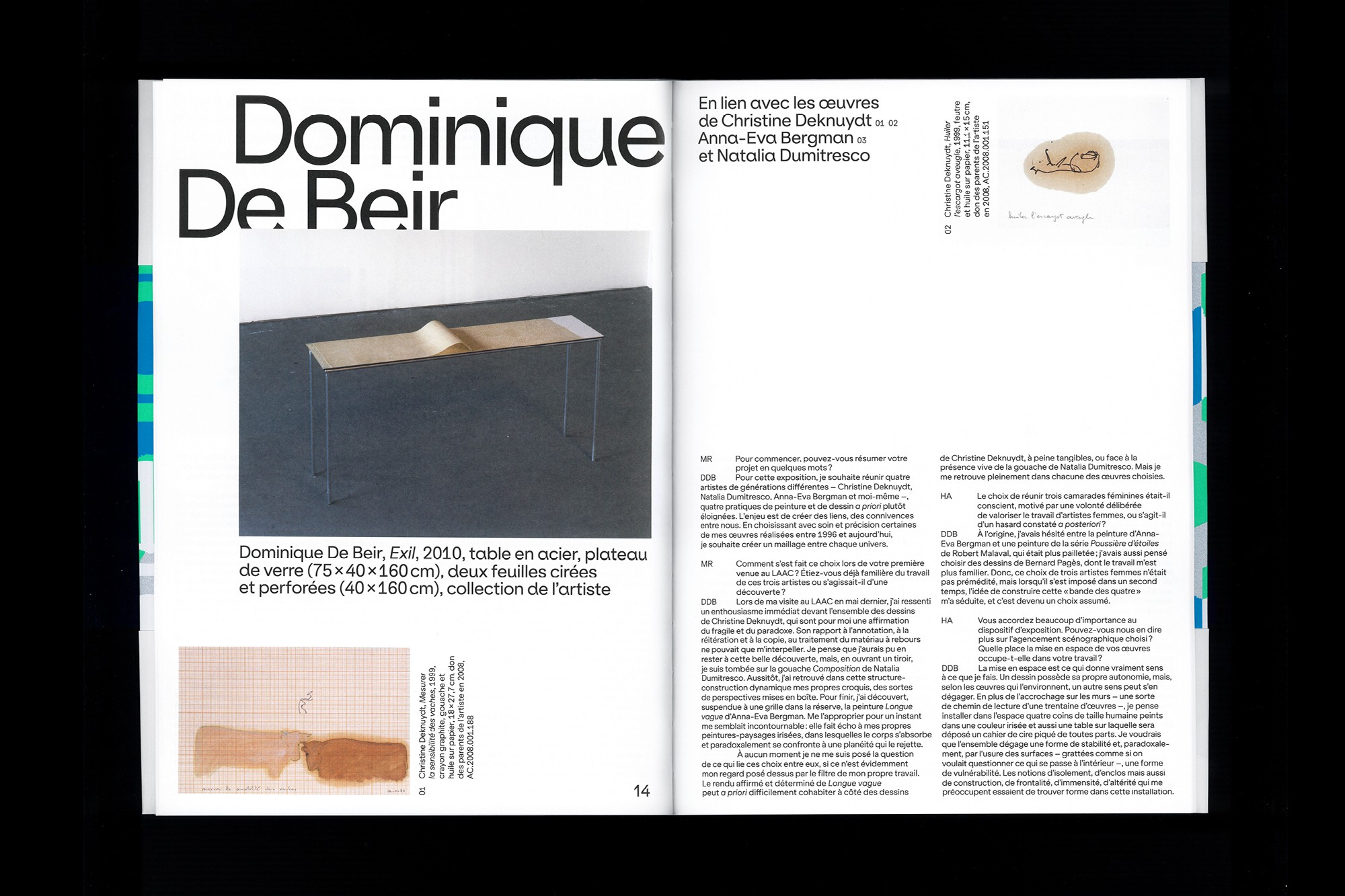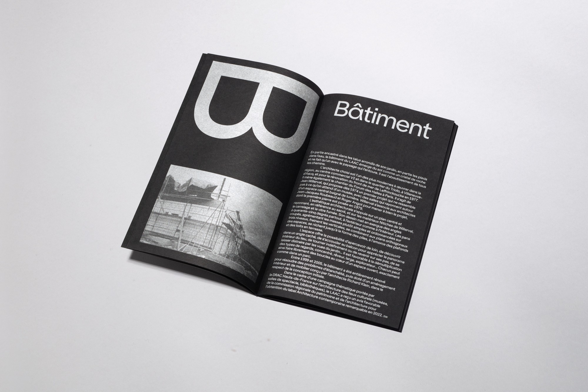 Avec le studio Hudson Catty nous combinons nos savoir-faire autour de la conception d’un livre-objet sensible et festif. Ancré dans l’histoire du territoire et remarquable par son architecture entourée d’eau, le LAAC présente pour ses 40 ans, les pièces maîtresses de sa collection aux côtés d’œuvres d’artist.e.s contemporain.e.s, en parallèle d’une histoire tissée autour de ses archives. Cet objet anthologique, reflète en sous-texte la richesse du matrimoine (axe important du développement culturel et scientifique du musée) et se décompose en trois livres : le premier est un catalogue d'exposition, le second une rétrospective de la collection permanente du musée et le troisième un abécédaire illustré. Chaque livre joue sur les notions de reflets, d’échelle et de contraste de texture, grâce à des jeux de papiers, techniques, encres et manipulations différentes.