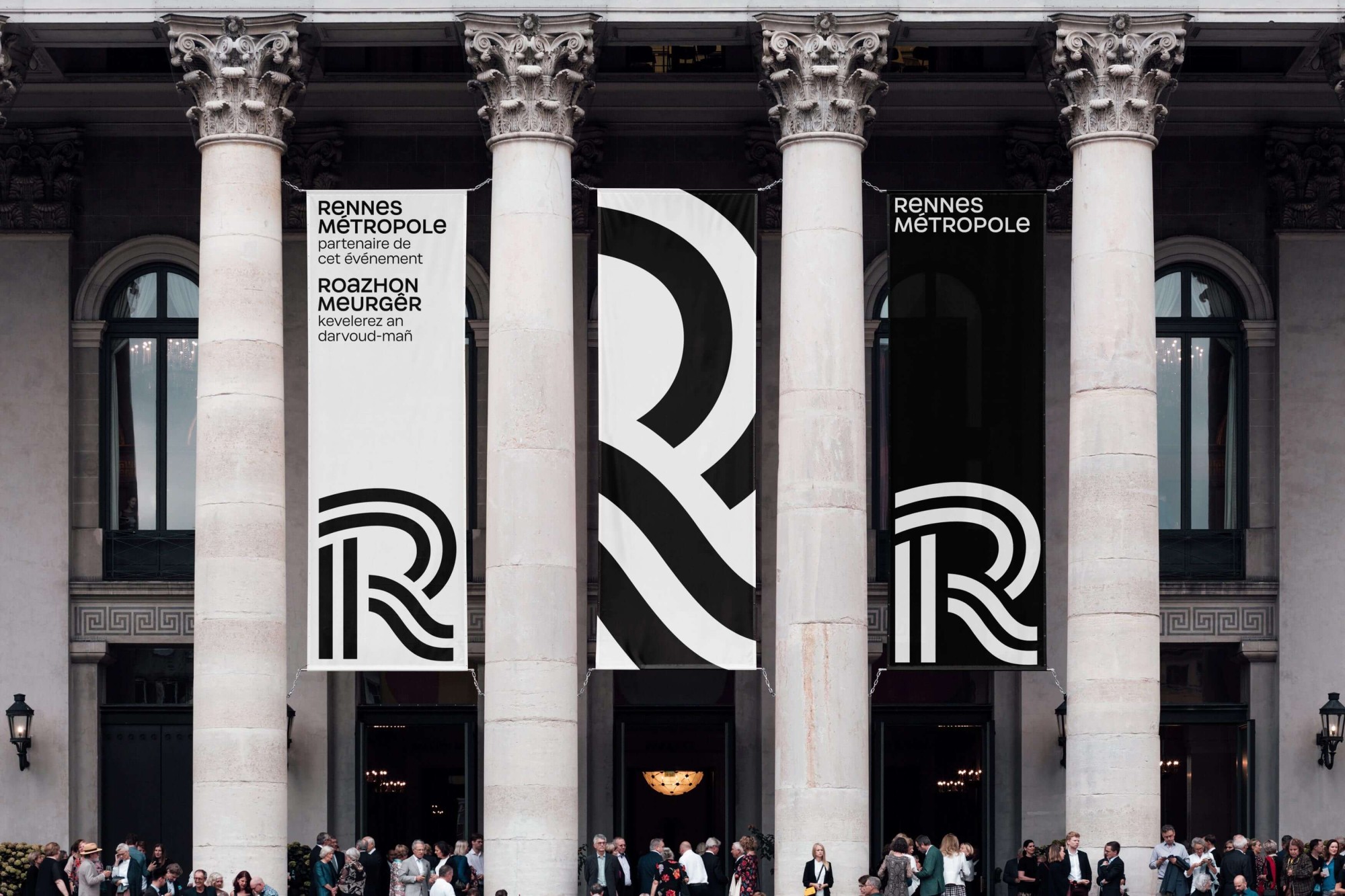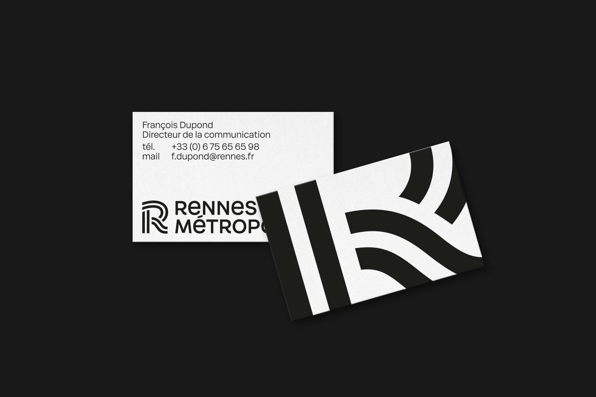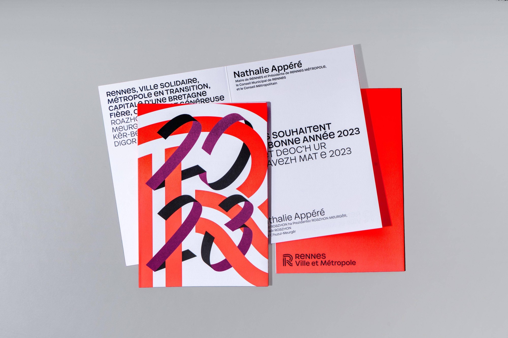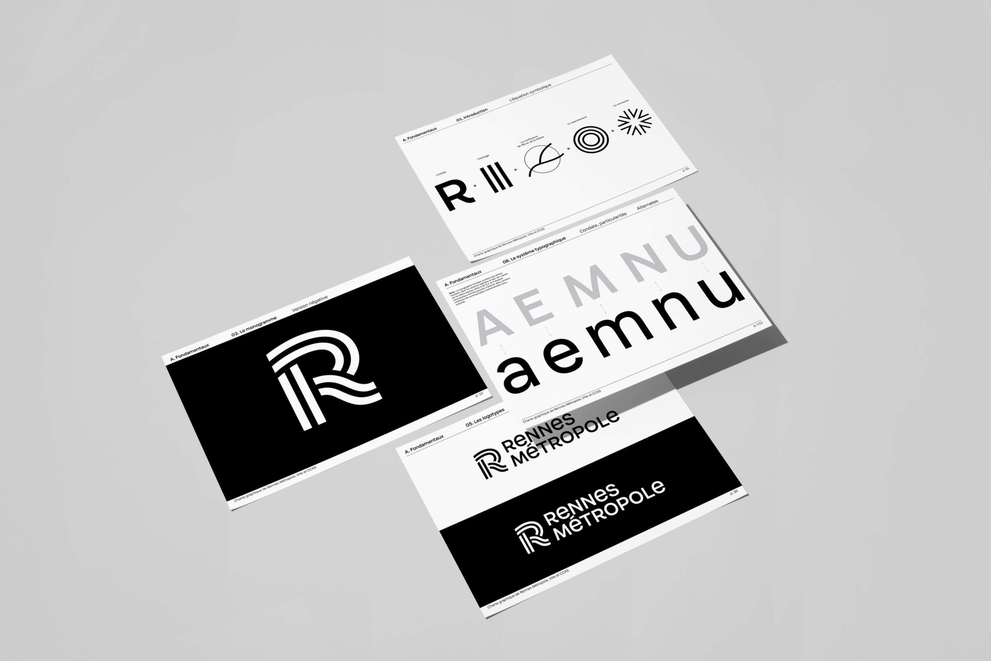 Pour réunir la Ville de Rennes, de la métropole et du Centre Communal d’Action Social autour d’une nouvelle identité visuelle, Rennes Métropole a lancé un appel d’offre que nous avons remporté, grâce à un système graphique sobre, mais ambitieux et novateur. Structuré autour d’un monogramme et une typographie sur-mesure, éléments communs à chaque entité, notre projet a pris racine dans l'histoire et les symboles forts de la ville, comme le drapeau breton et l’écriture onciale. Le monogramme évoque ici la confluence des fleuves, l'attractivité et le rayonnement de « la 1e ville française où il fait bon vivre ». Le caractère « Condate », pivot d’un système d’identité modulaire, donne à Rennes une voix unique dans le paysage des grandes métropoles françaises.