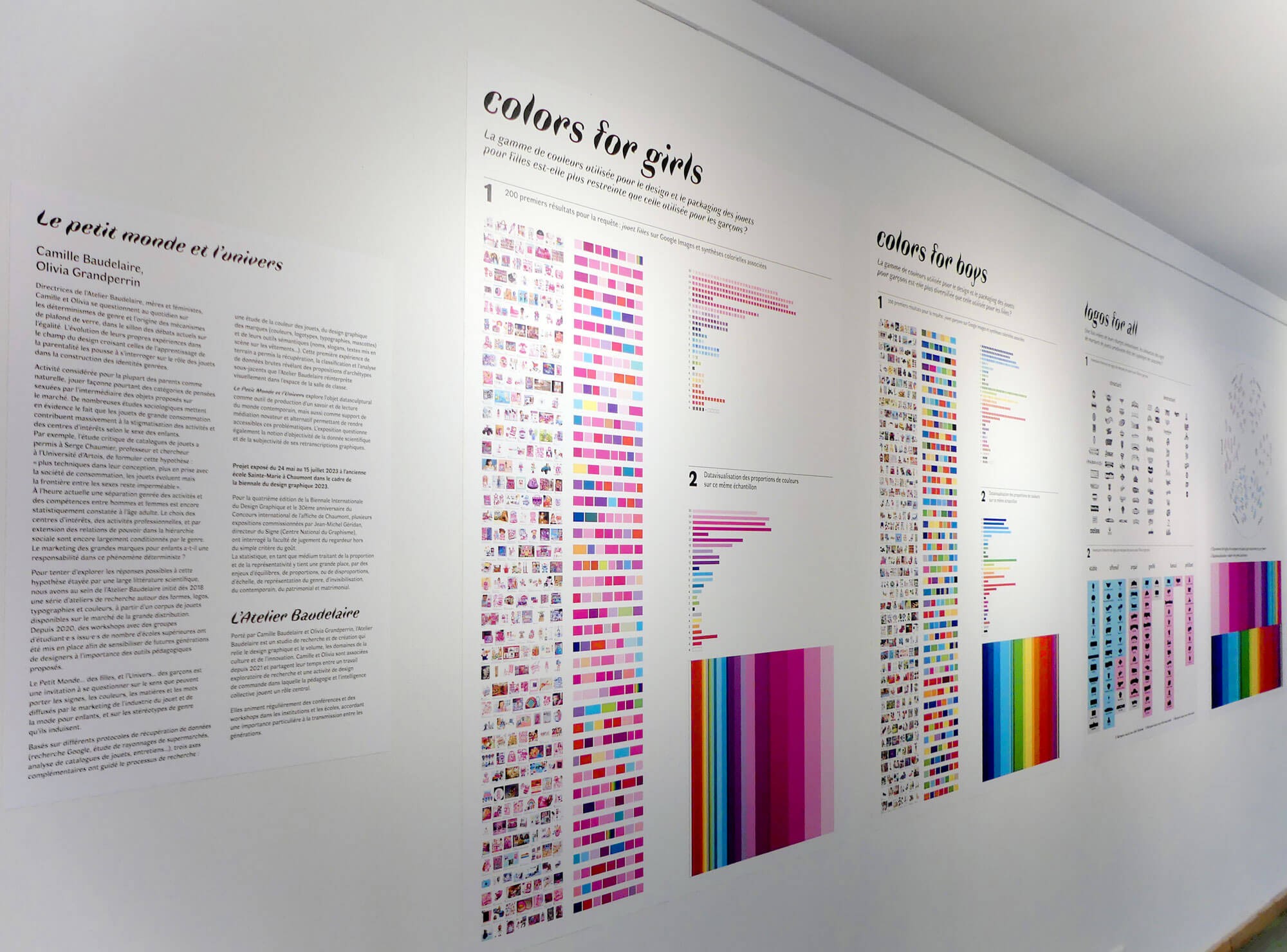 à la 4ème Biennale internationale du design graphique 2023 du 24 mai au 15 juillet 2023 à l'Ancienne école Sainte-Marie à Chaumont. Scénographie complète pensée comme un kit, entièrement démontable, transportable et ré-agençable facilement. Des outils de médiation mobiles permettent une lecture autonome et une compréhension claire de l'exposition. Les matériaux et le design des mobiliers ont été conçu de façon écologique : minimisation des pertes et réemploi total.