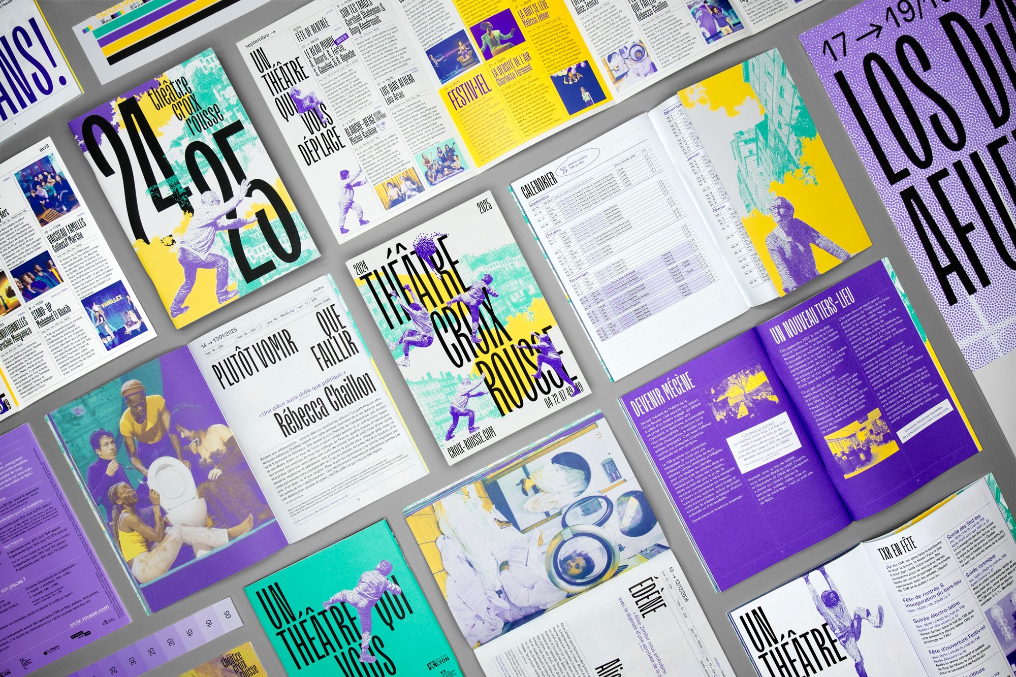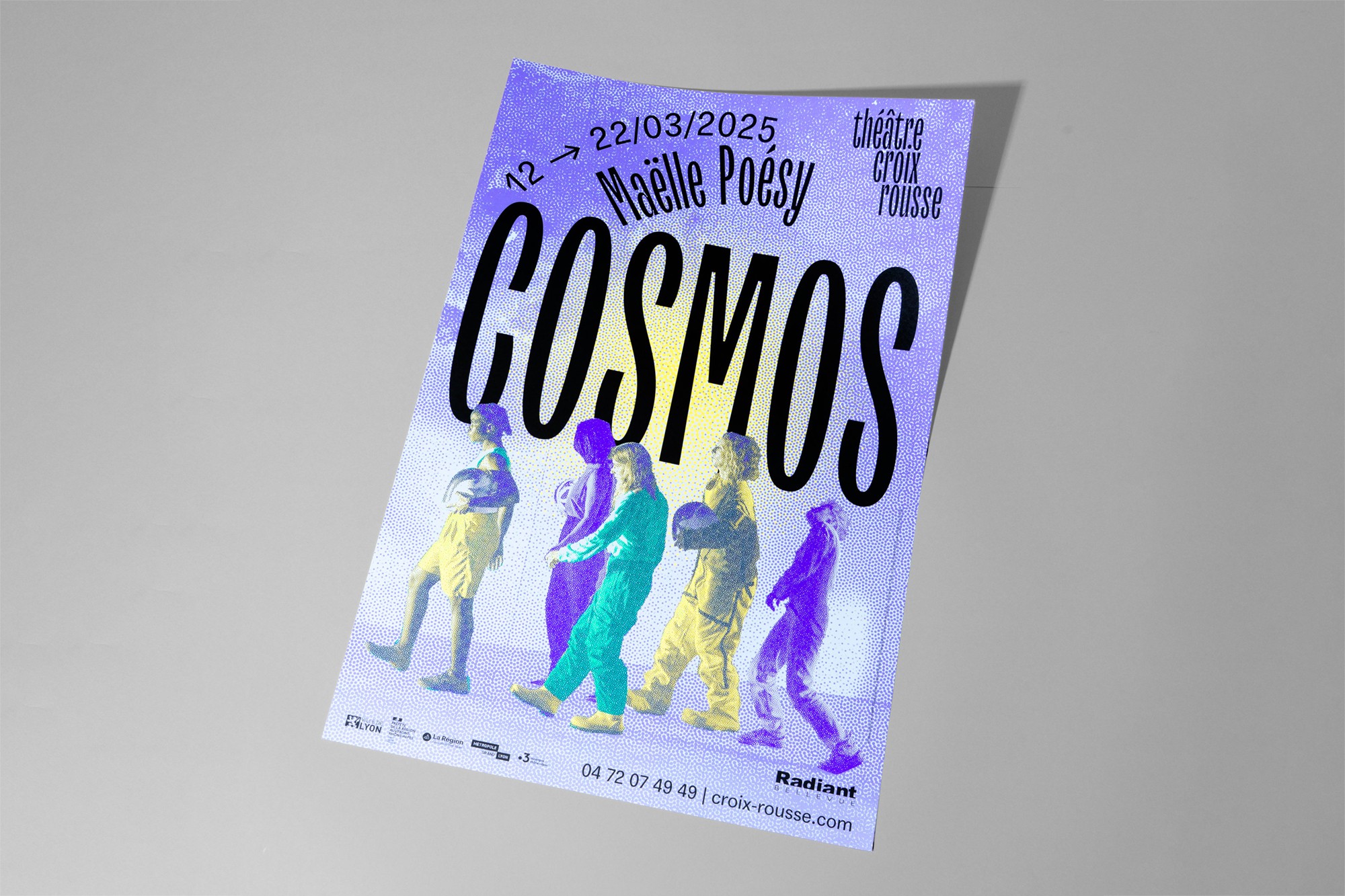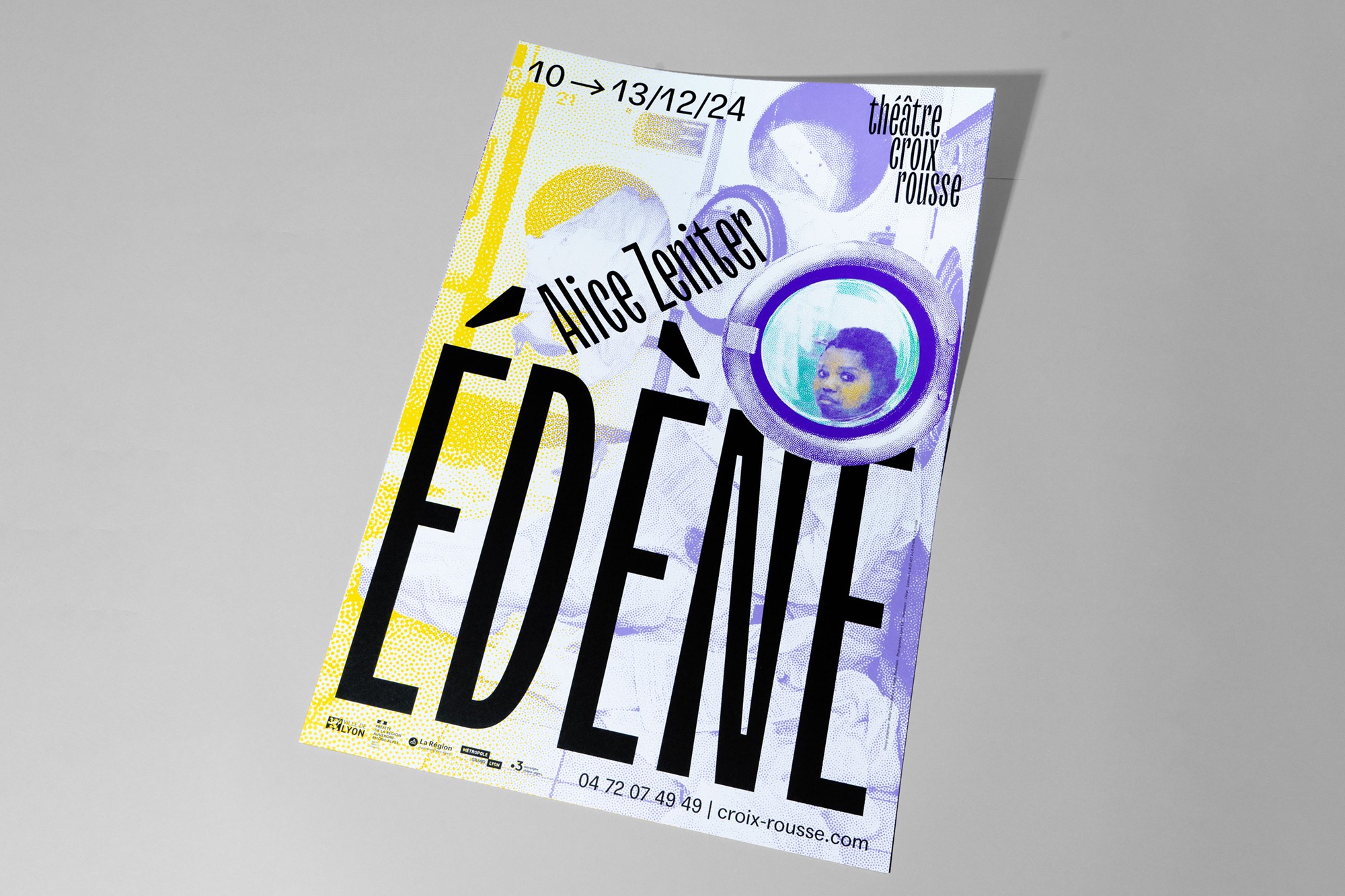 Le visuel de cette saison 2024-25 conserve le principe de superposition de plans et de couches entre typographie, paysages et personnages colorés. Une séance photo menée au sein du théâtre nous a inspiré cette composition où s’entremêlent corps et lettres. La mise en page en escalier, qui fait écho aux collines de la Croix-Rousse, est un axe fort de l’identité du théâtre que nous continuons de faire vivre au fil des saisons.