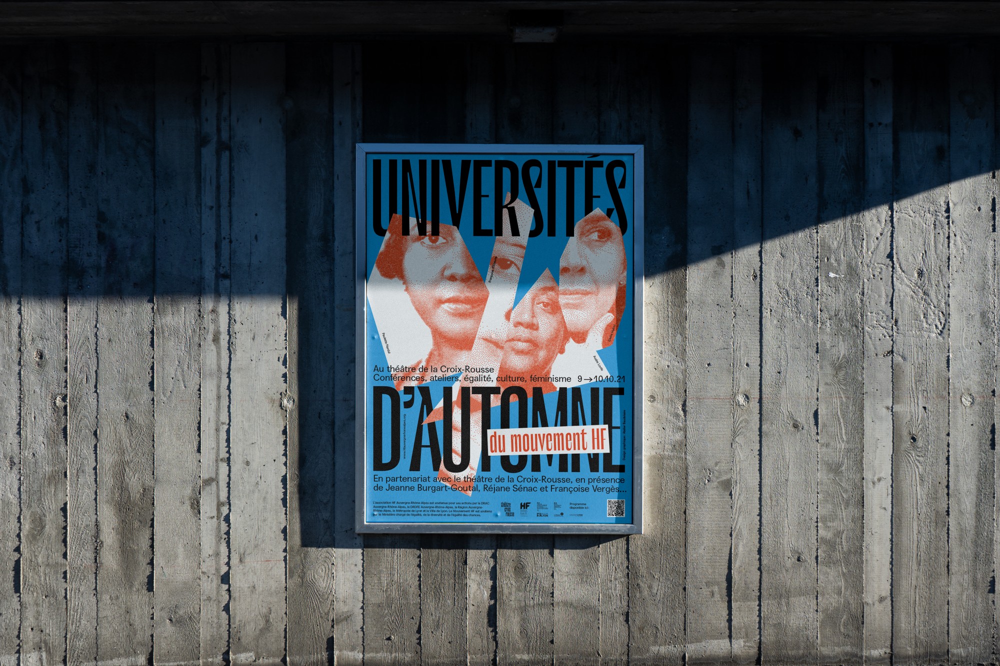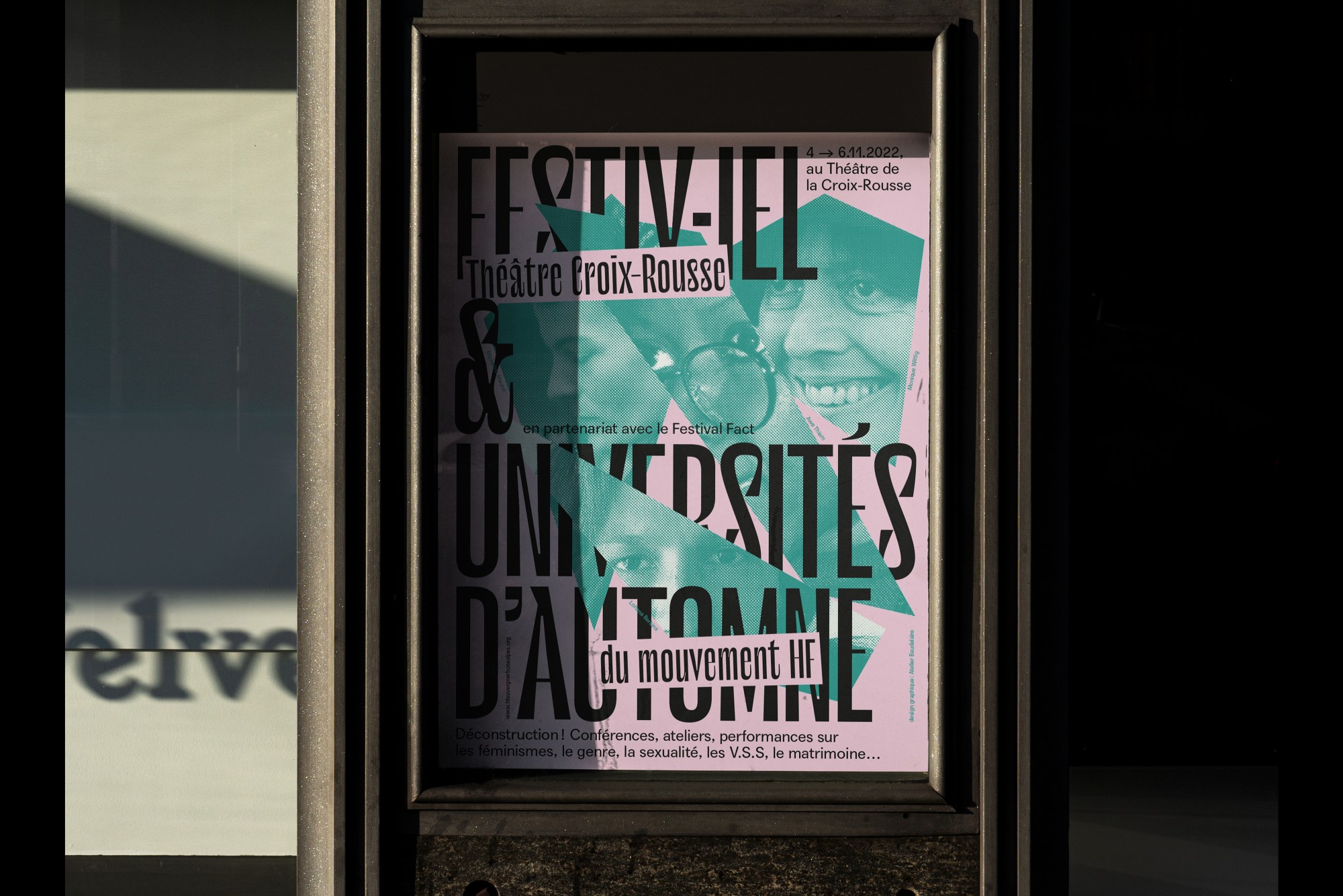 Depuis 2021 l’Atelier Baudelaire soutient l'association HF Rhône-Alpes, engagée pour l'égalité des genres dans le secteur culturel. Chaque année nous réalisons l’affiche de l’événement en partenariat entre l’association et le Théâtre-Croix Rousse. Conférences, spectacles et ateliers avec des spécialistes féministes sont proposés le temps d’un week-end.