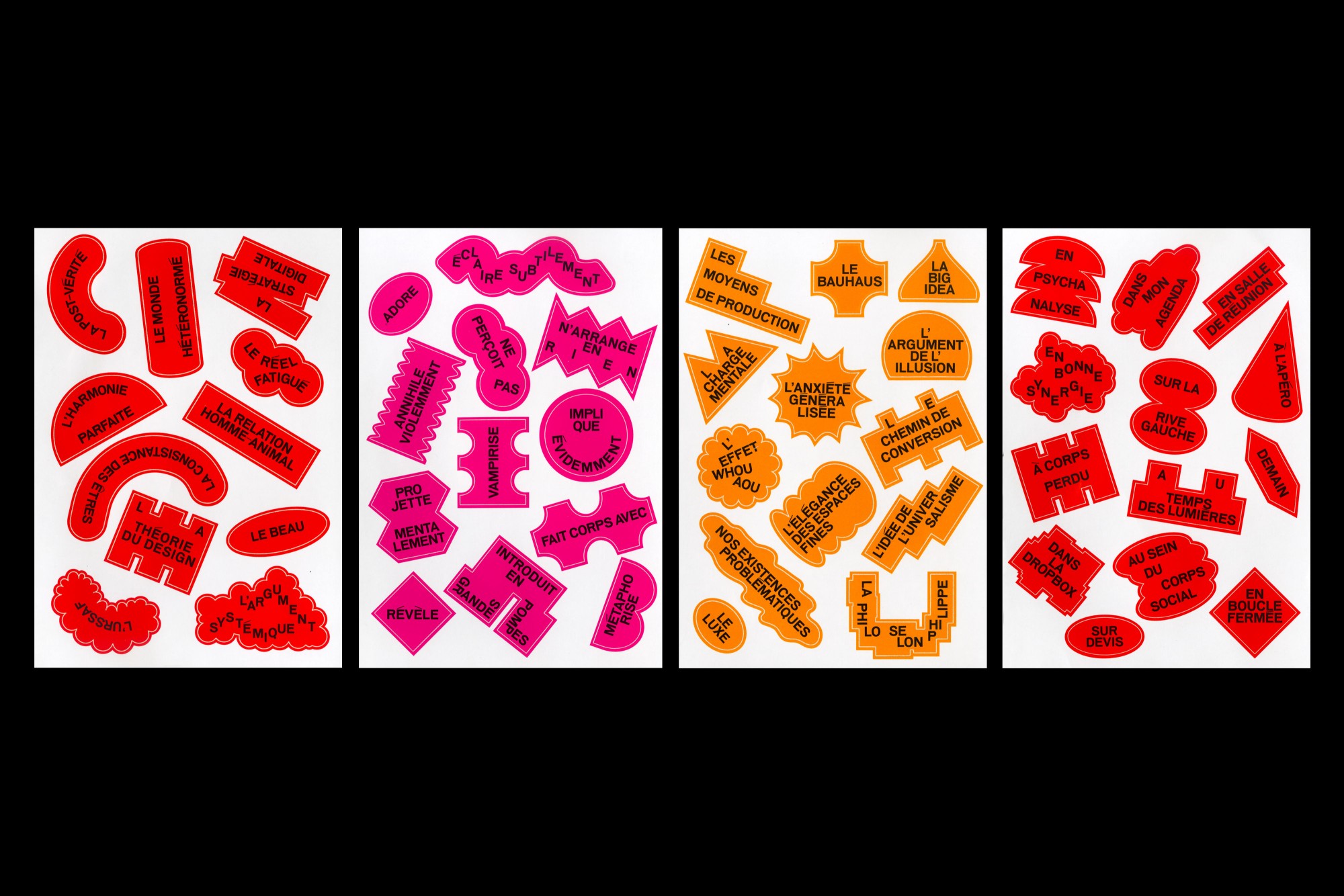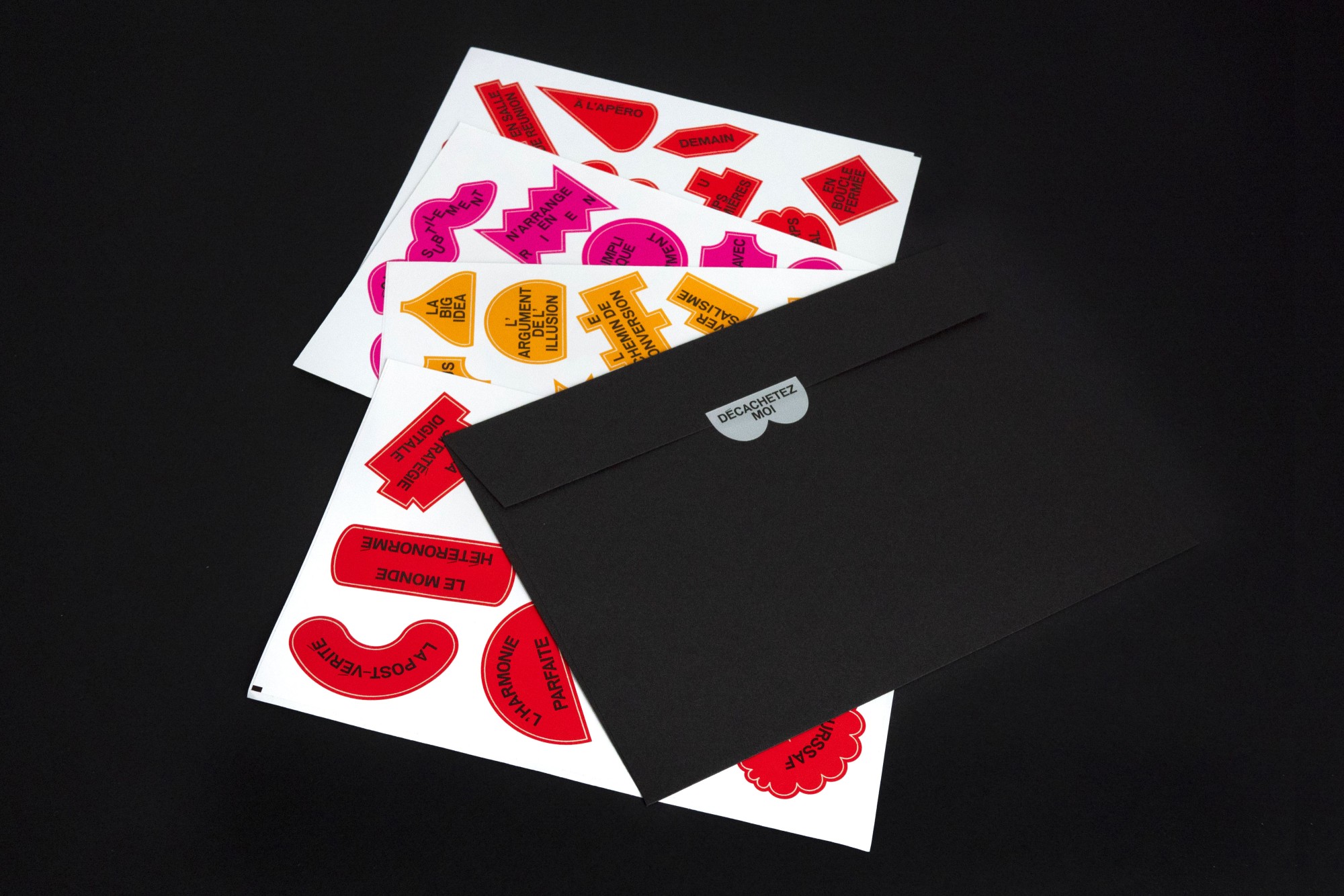 Fondés sur le principe du cadavre exquis, ces stickers, à la fois visuels et textuels, permettent de composer des phrases amusantes et poétiques.