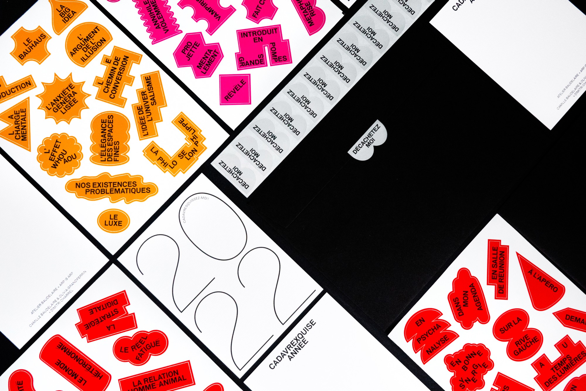 Sur une invitation du magazine Étapes et grâce au soutient de l’imprimeur Exaprint, nous avons imaginé une carte de vœux performative à composer soi-même. Le jeu se mêle au design pour célébrer 2022, et fêter l’arrivée d’Olivia Grandperrin comme co-directrice de l’Atelier Baudelaire.